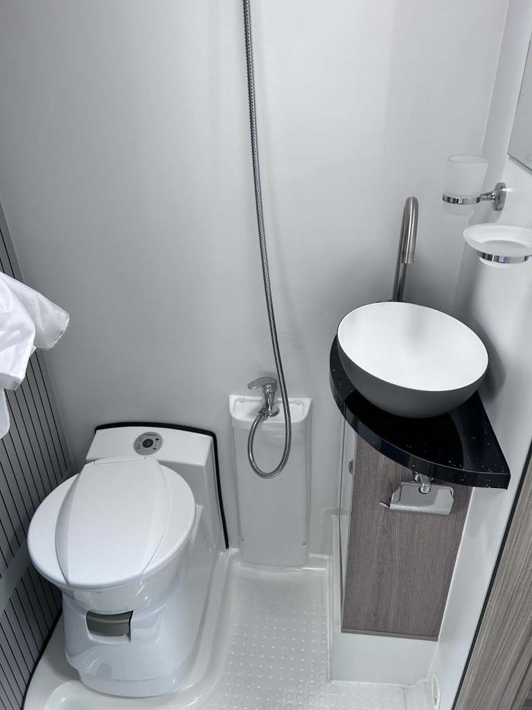 Xplora ELD offers you the finest fabric upholstery with a high standard woodwork to compliment the spacious living area. The handmade cabinets are designed for each individual motorhome and the fixtures and fittings are of the highest quality. The spacious rear living area converts into a double bed. A well equipped bathroom incorporates a toilet, wash basin and shower.
