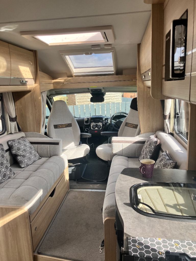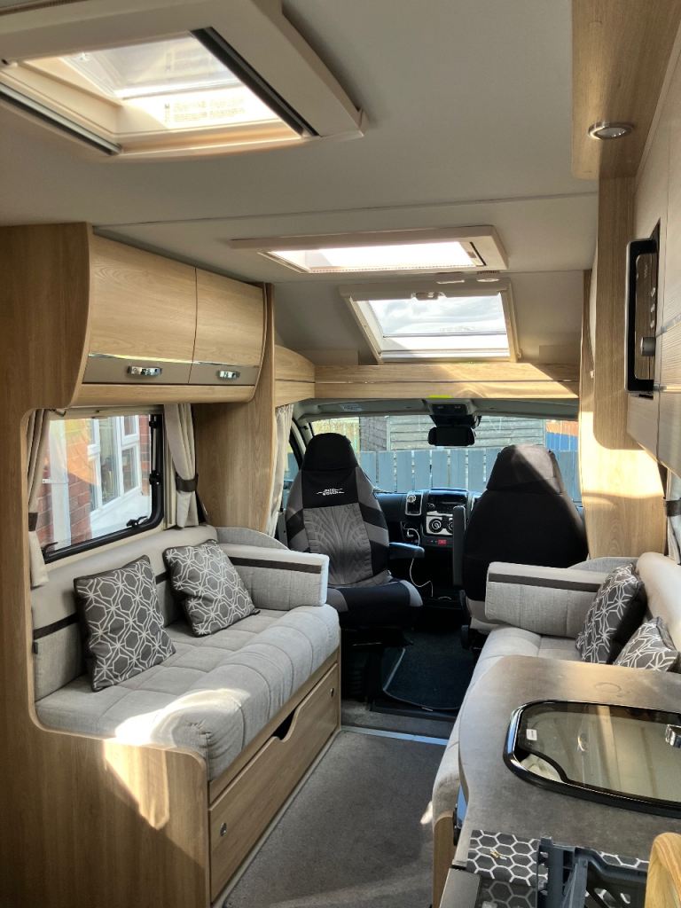 2020 Elddis Autoquest 155 – Low Miles, Popular French Bed Layout!This excellent 2020 Elddis Autoquest 155 offers a highly sought-after 4 berth layout with fixed rear French bed, making it ideal for couples or families wanting comfort and convenience on the road. With just 14,000 miles, this motorhome ready for its next adventure.Built on the reliable Peugeot chassis, the Autoquest 155 is easy to drive while providing a bright, spacious and well-equipped living area.Key Features: 4 Berth / 4 Seatbelts Only 14,000 miles, Fixed rear French bed with excellent storage Front lounge/dinette converting into additional double bed Fully equipped kitchen with hob, oven, grill and fridge Washroom with toilet, shower and hand basin, Whale heating and hot water system, Blinds and flyscreens throughout Skylights providing plenty of natural light Ample internal and external storage, solar panel for extra charging capacity. The fixed French bed layout allows you to keep the sleeping area made up while still enjoying a comfortable front lounge space for relaxing or dining.A fantastic opportunity to own a low mileage, modern motorhome that is perfect for touring the UK or travelling further afield.Ready to drive away and start your next adventure.
