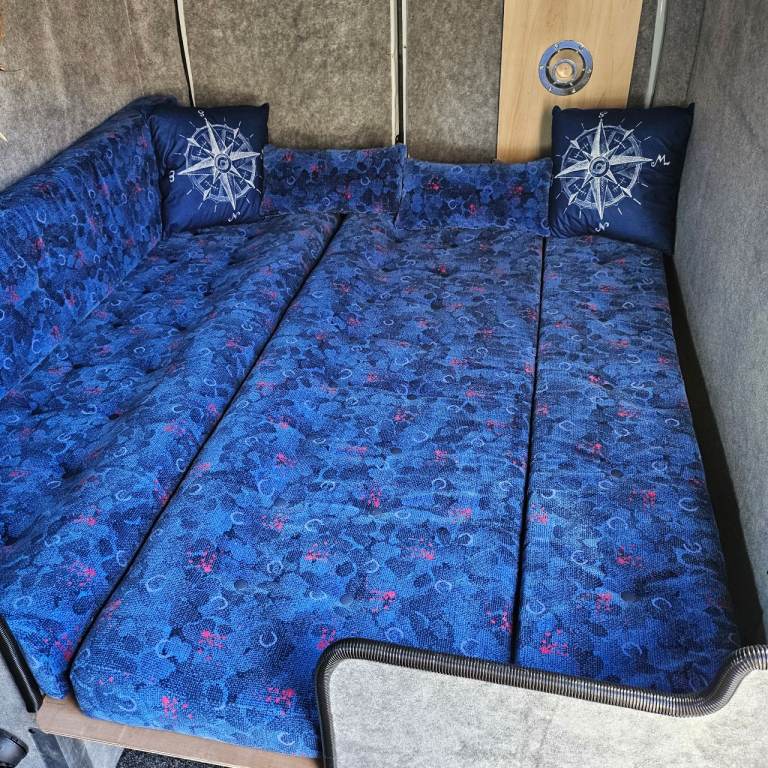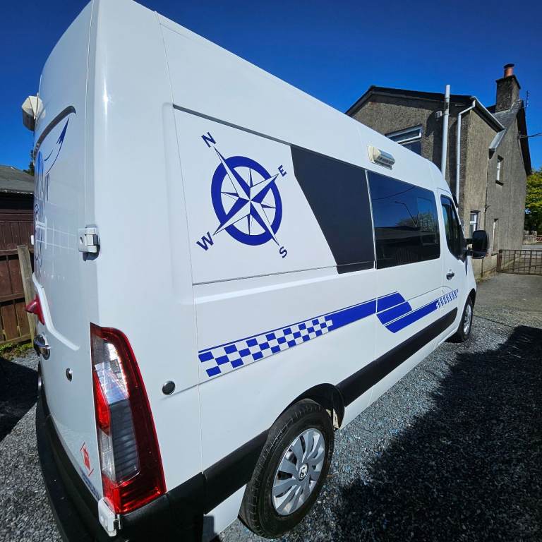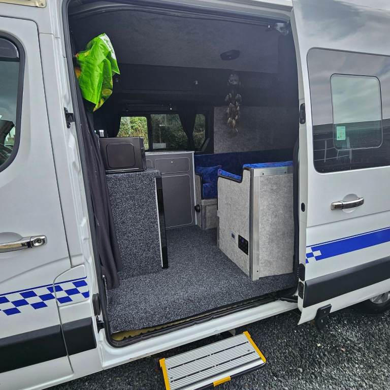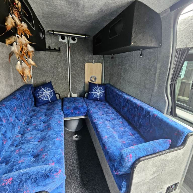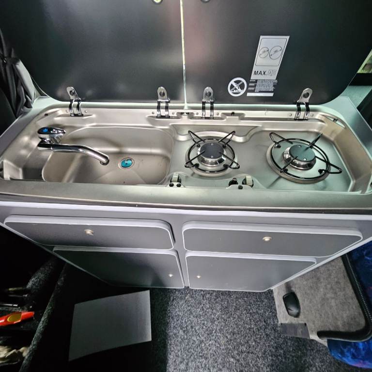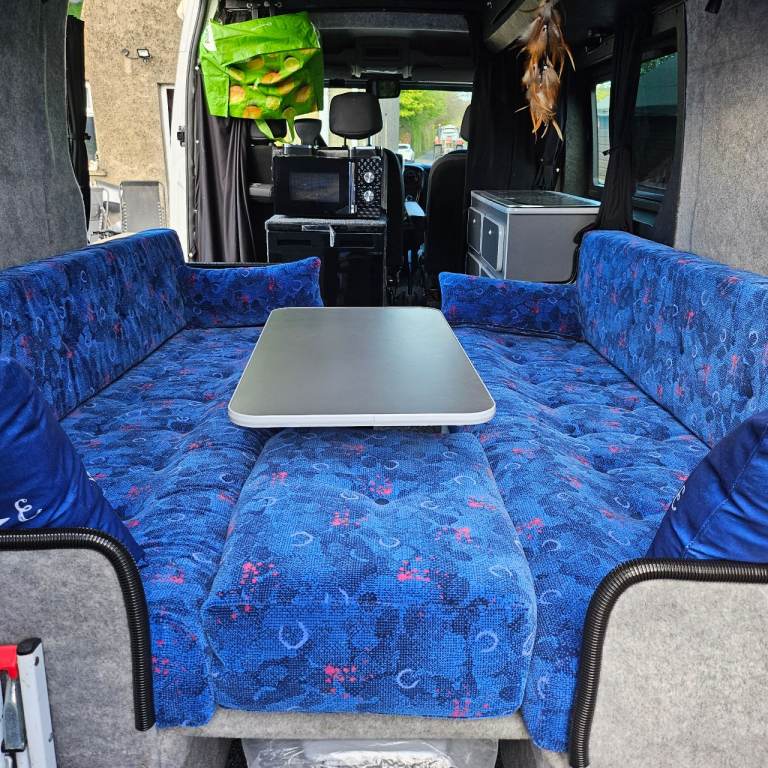 2019 new conversion comprising of all new interior, smev 9222 double burner glass top kitchen unit, new 90 litre fridge, microwave, two new rear couches folding into a massive 6 foot x six foot double bed, new 21 inch bluetooth tv, 2000/4000 watt 240 volt inverter, wired up for solar panel, opening rear privacy tinted windows, all new fabric, led lights, new curtains, two leisure batteries for complete off grid camping, 240 volt hookup, new flooring, new vinyl graphics, new visor and window deflectors, digital axle weighing system .