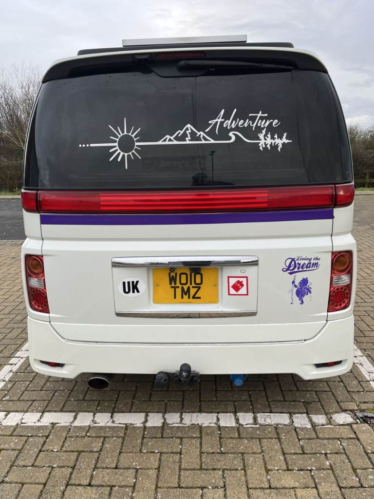 In Pearl White a stunning 2010 Nissan Elgrand camper van, professionally converted to a high-spec, full camper.