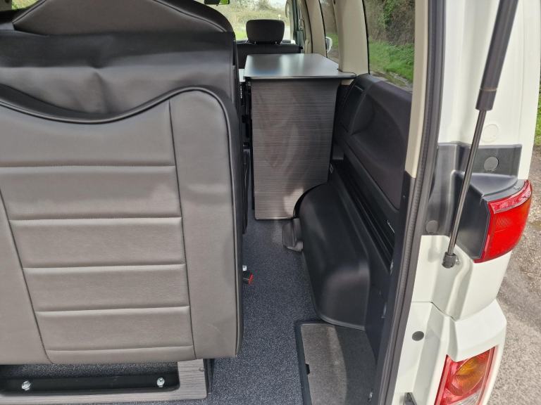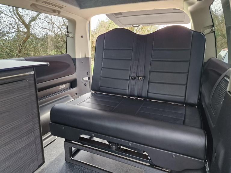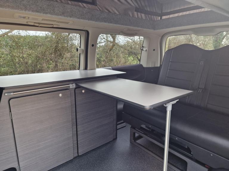 Included within the day van are a pop top roof which provides large amounts of standing room once elevated, with the option to have a roof bed fitted to double the sleeping capacity. The rock and roll bed is easy to use and convert from seating position to bed in under 10 seconds, with integrated storage bellow the bed offering lots of space.