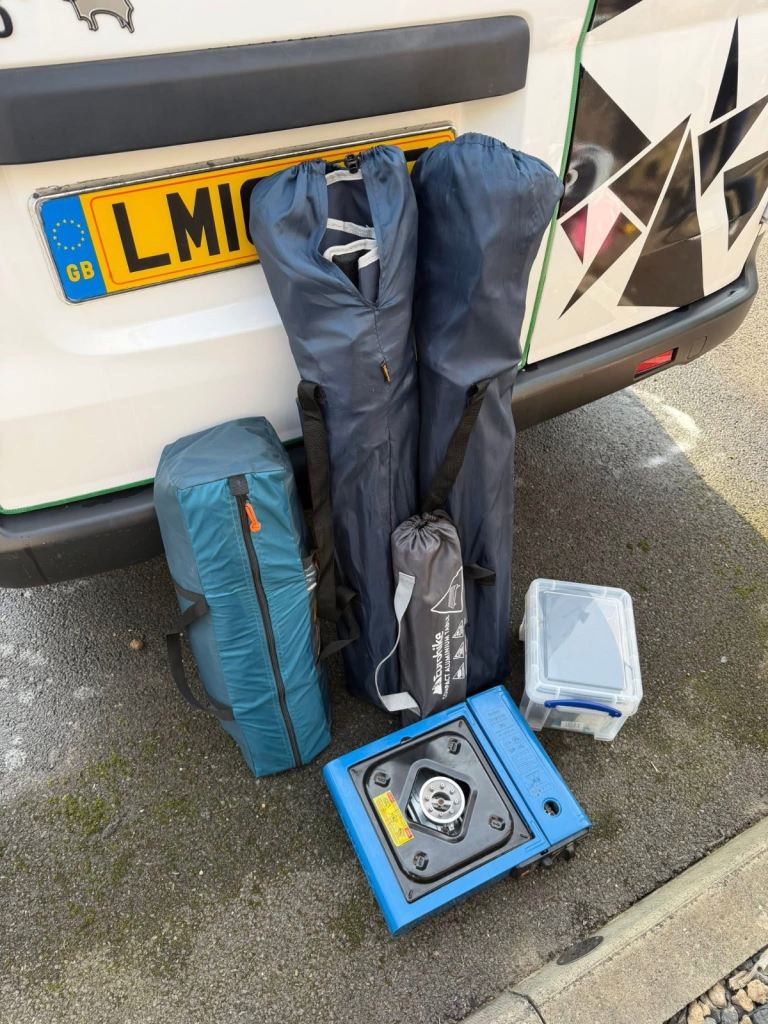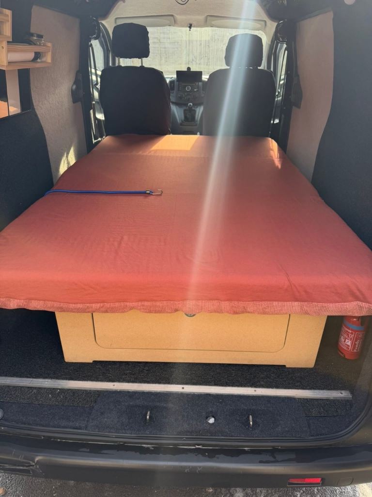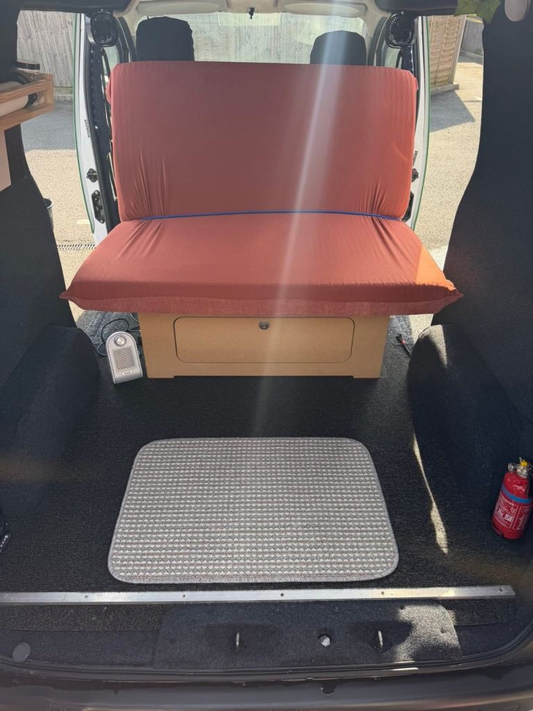 Converted to a mini camper and functions as such, but it could be used however you like. Insulated and carpet lined, custom bed fitted that folds to a seat. 100w Solar Panel that charges a Bluetti AC50B. Cable fitted so it also can charge off the van battery when running. Lights, speakers, amp, Halfords travel fridge and mini fan heater - all powered off the Bluetti and cabled in. Dashboard screen with lots of features, front and rear view camera - automatically switches to rear view when in reverse. Lots of camping accessories. Van in very good condition. Before we purchased it, it's previous life was just a run about for a laundry business so didn't get loads of hammer like a work van would. Recently had a new battery.