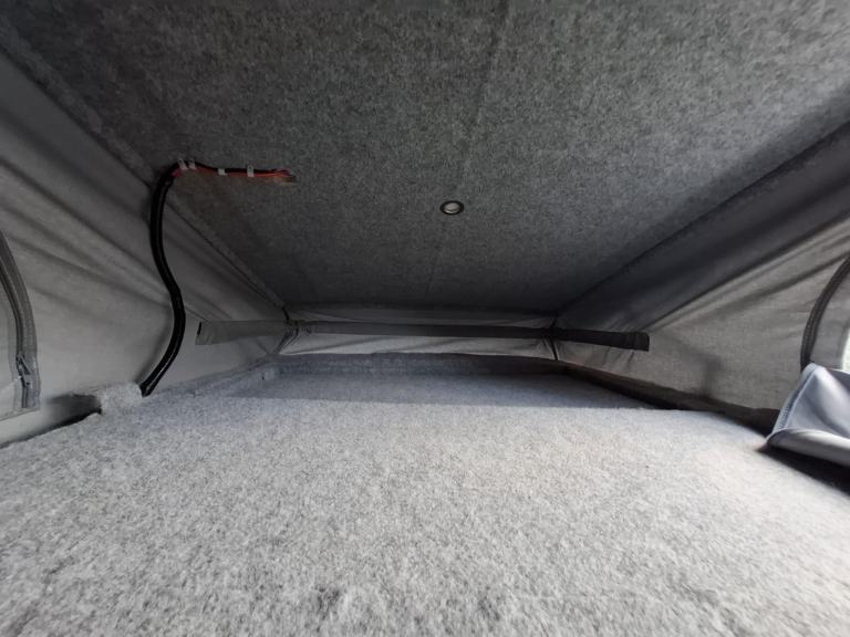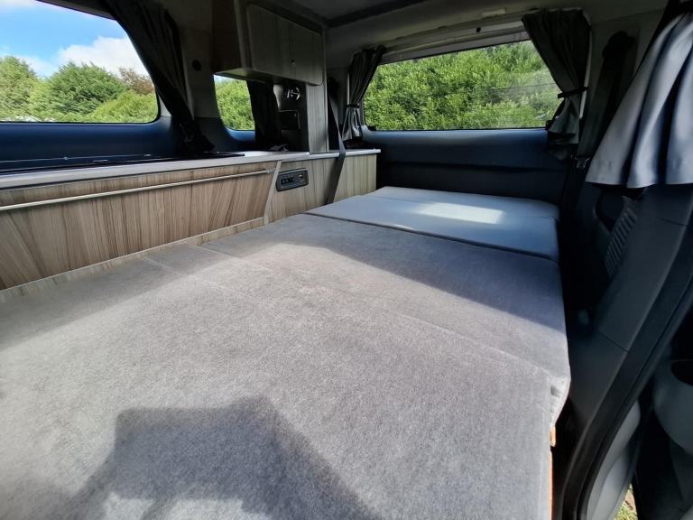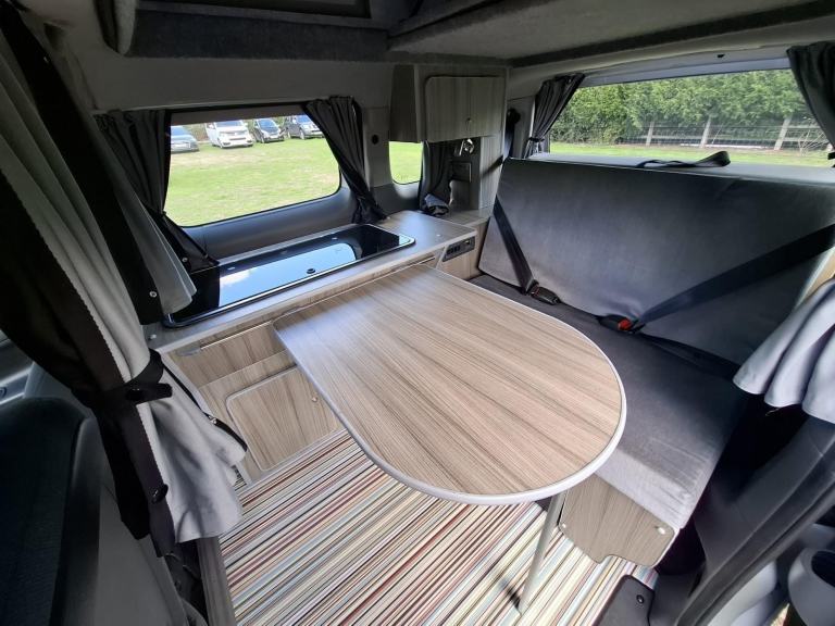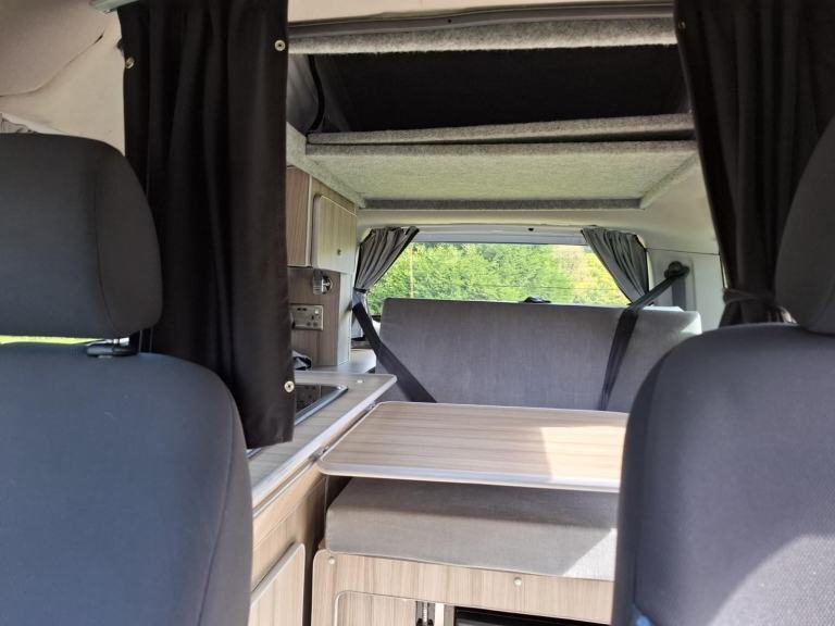 The rear seat can be readily converted into a transverse double berth, with the option of two additional small sleeping spaces in the pop top.