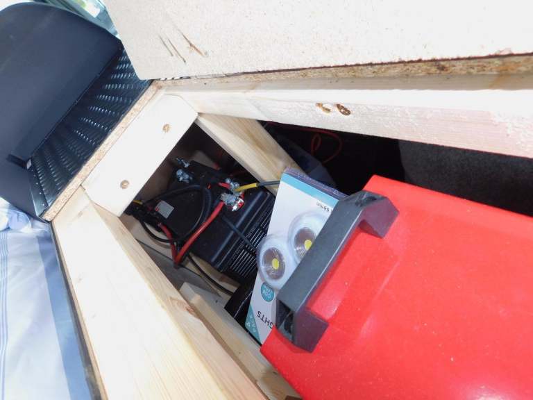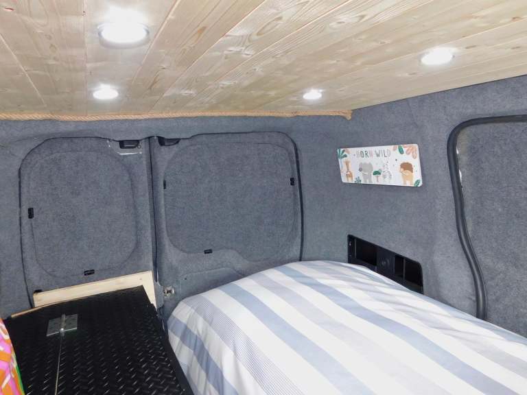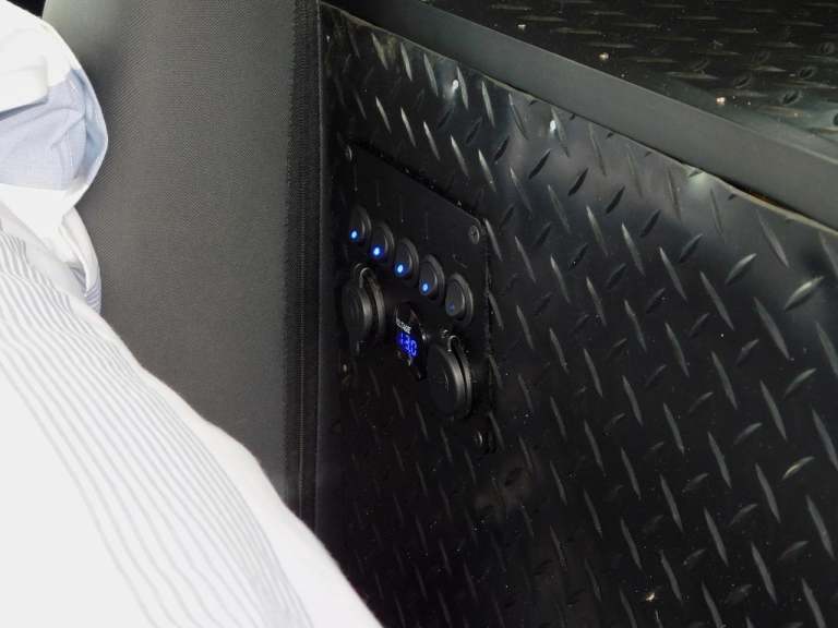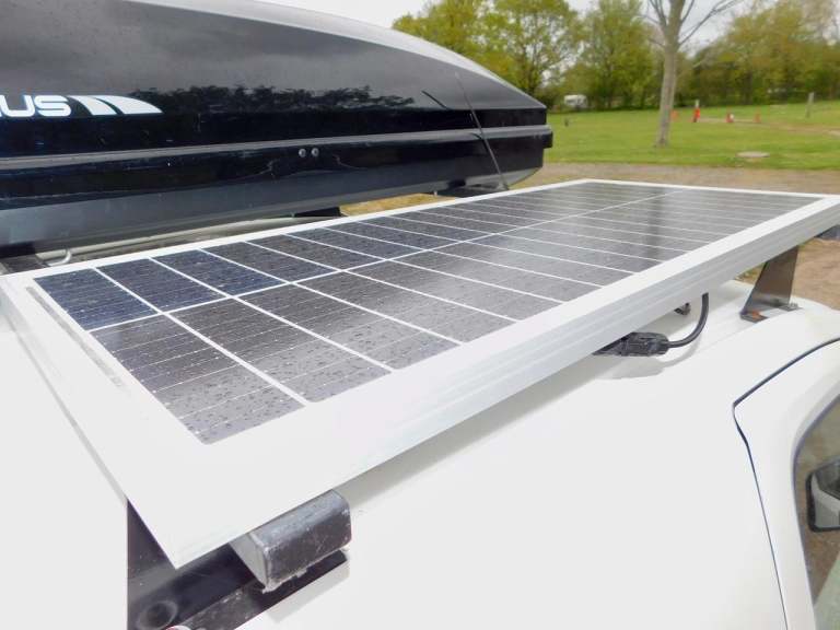 Roof mounted Exodus Top Box for additional Storage. Roof Mounted Solar Panel to keep the 130 AH Battery Charged. A Control Panel for 12v connector and lights. 4 x ceiling mounted LED Lights integrated into the wooden strip roof lining. The interior has also been lined..