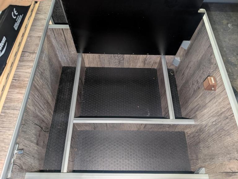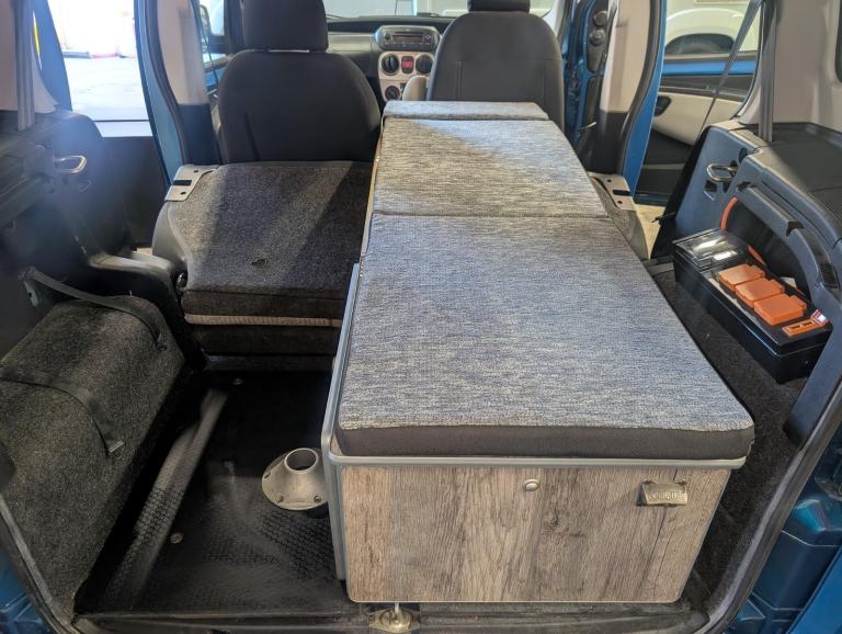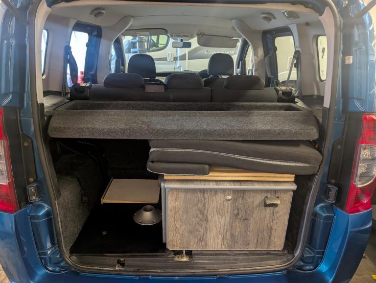 The camping bed section is neatly stored in the boot