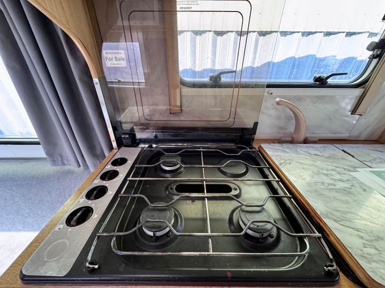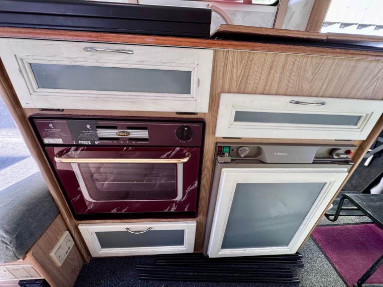 • Gas hob, oven, sink, 3-way fridge