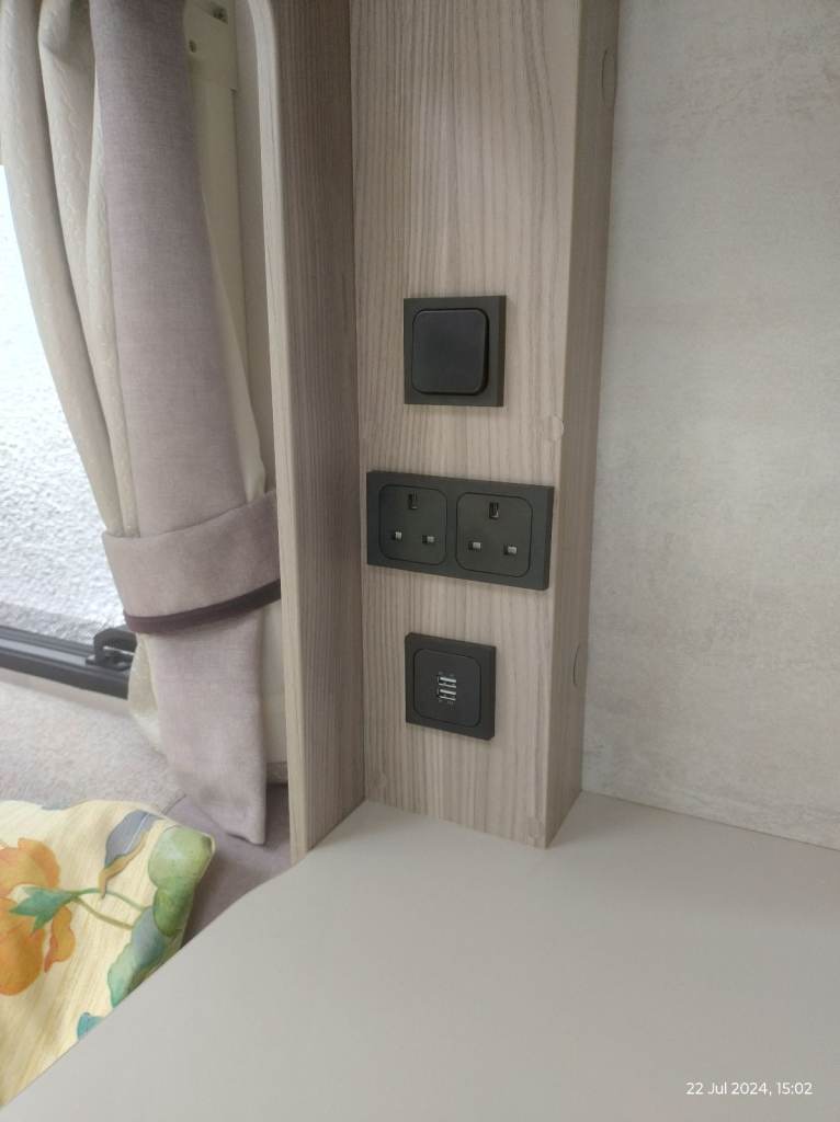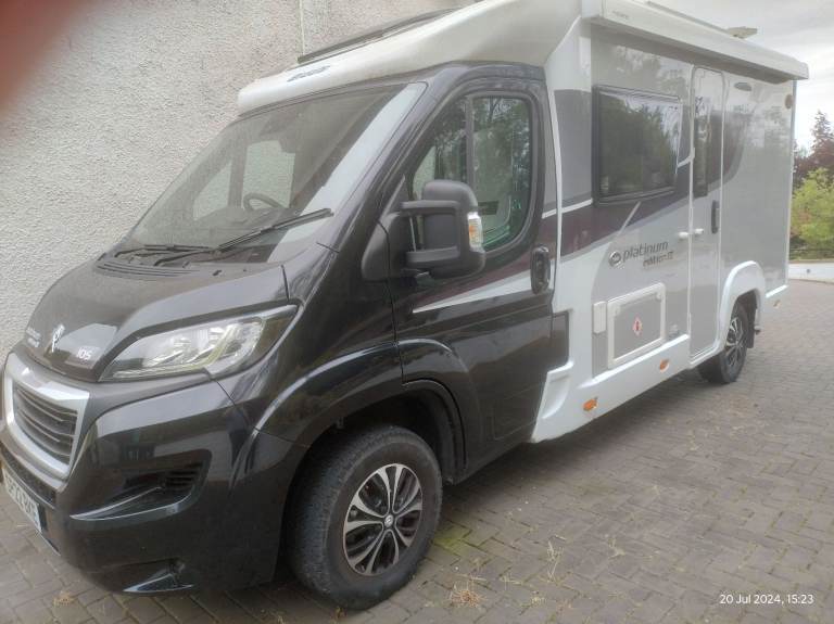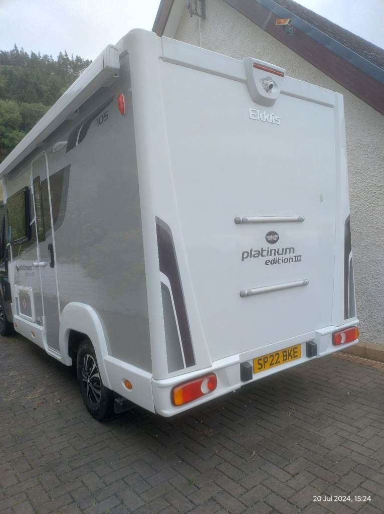 Elldis 105 Platinum edition version 3 in immaculate condition inside and out. 1 owner from new. 2 berth, end washroom and separate shower. Kitchen with microwave, gas oven, fridge. TV bracket. Solar panel. Taxed till December 2025, MOT till August 2026. Habitation certificate till August 2026. Full service history and all documentation available.