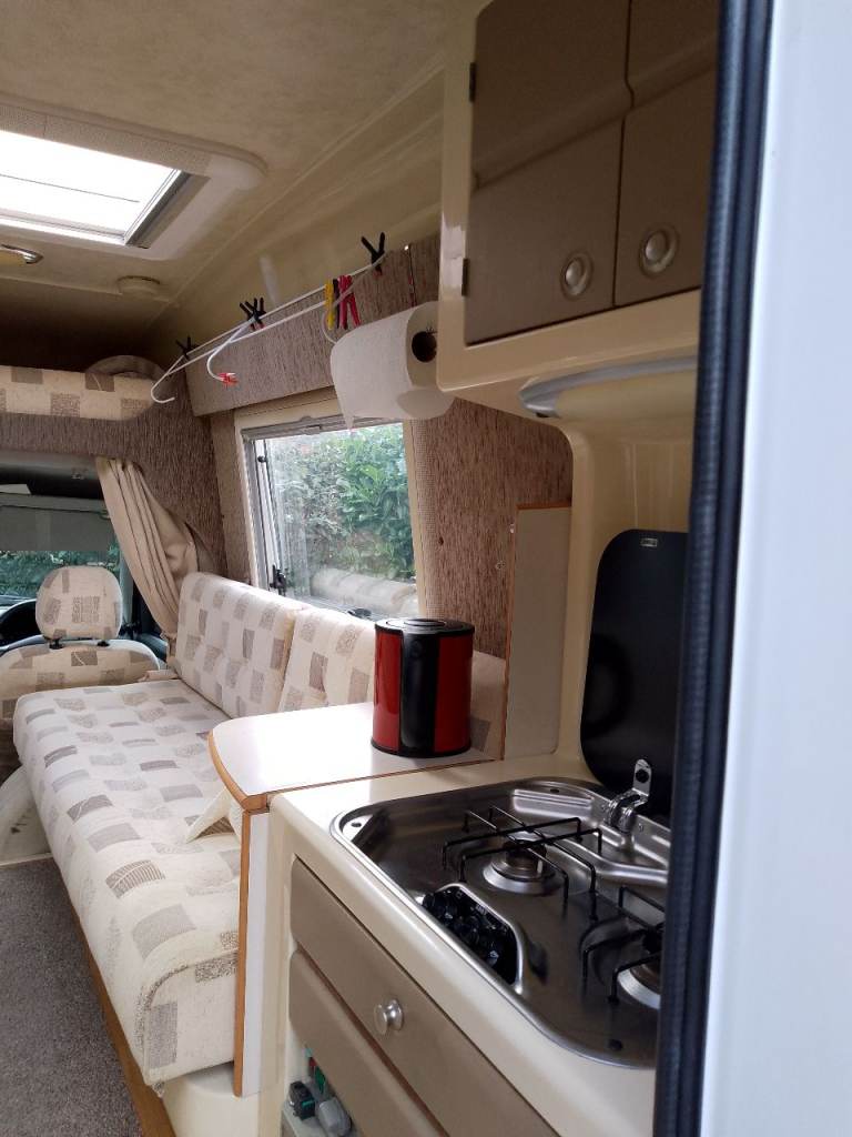 Radio & CD player. Omnistor wind out awning. Recently fitted rear view camera eliminates driving blind spot at rear and doubles as a reversing aid. Timing belt and water pump replaced less than 10k miles ago. Brake discs and pads replaced 5k miles ago. Structurally sound underneath, 2 sets of keys. The engine is strong, reliable and quiet which makes driving a comfortable experience. Touring the highlands of Scotland it returned 47 mpg. Garaged year round, valetted & ready to go. Any inspection welcome.
