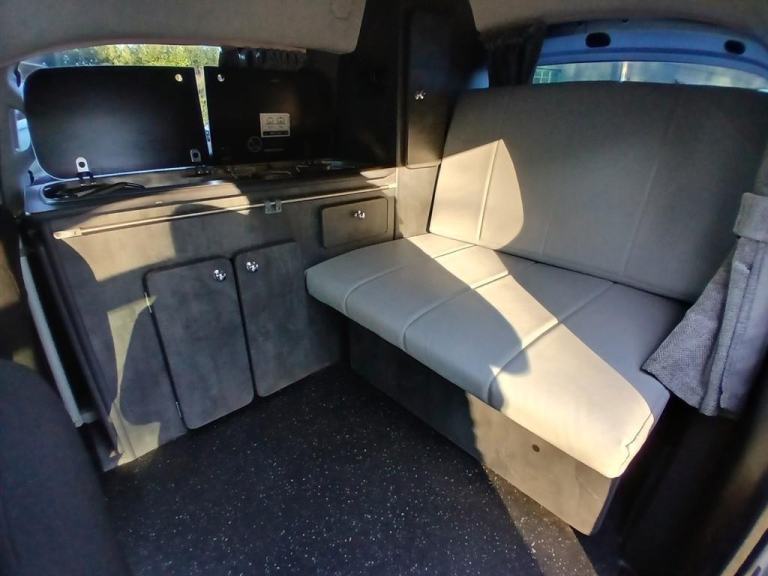 The interior layout. The layout of this 2013 Horizon based day-van camper consists of a side kitchen featuring a twin gas hob, 12v cool box, sink & tap, and work surface. The seating to the rear consists of a bench seat, which doubles up as a bed when needed. There is ample storage throughout for your essentials.