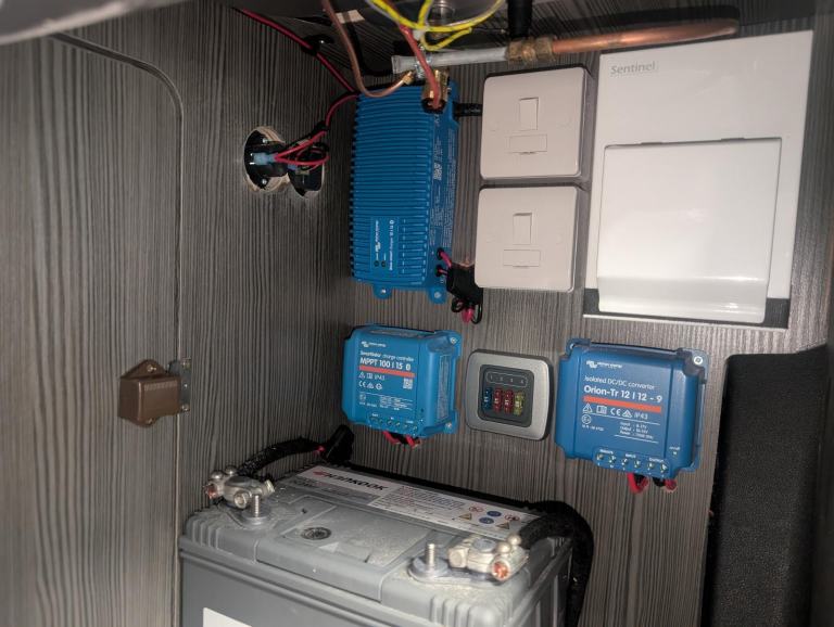 It has 240v hook up, 12v leisure battery and a gas locker