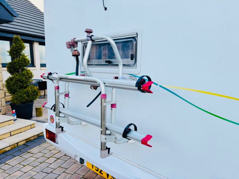 REAR GARAGE / BUNK BED SO YOU CAN HAVE THE CHOICE OF A LARGE GARAGE AND A BED ABOVE OR TWO SINGLES REALLY VERSATILE BIKE RACK TOW BAR REVERSE CAMERA