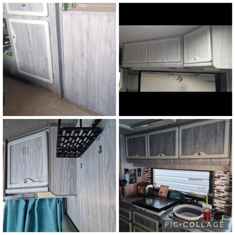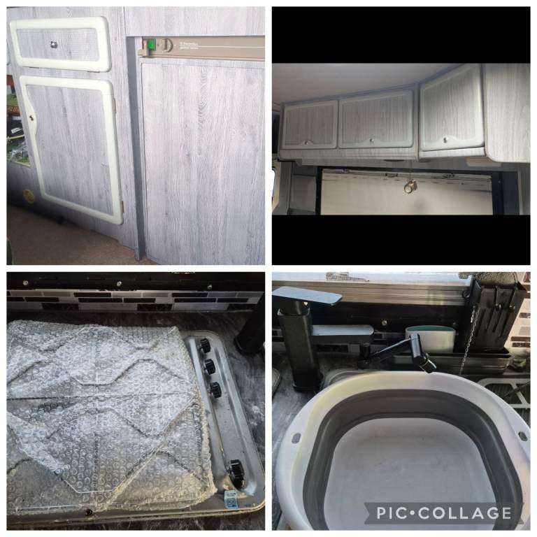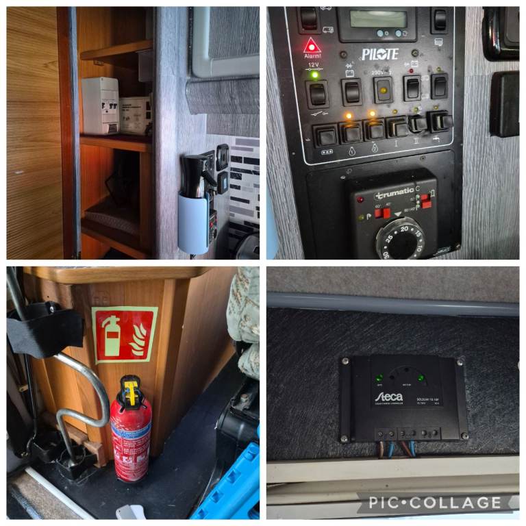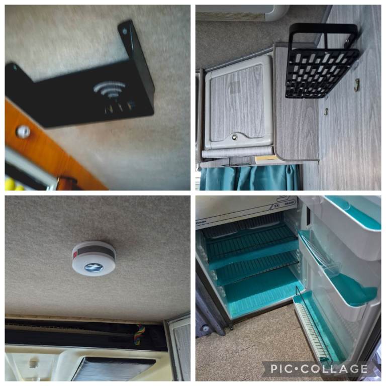 Wardrobe and loads of storage cupboards and underseat storage in the kitchen and end diner/bedroom. Smoke/co2 alarm WiFi shelf.