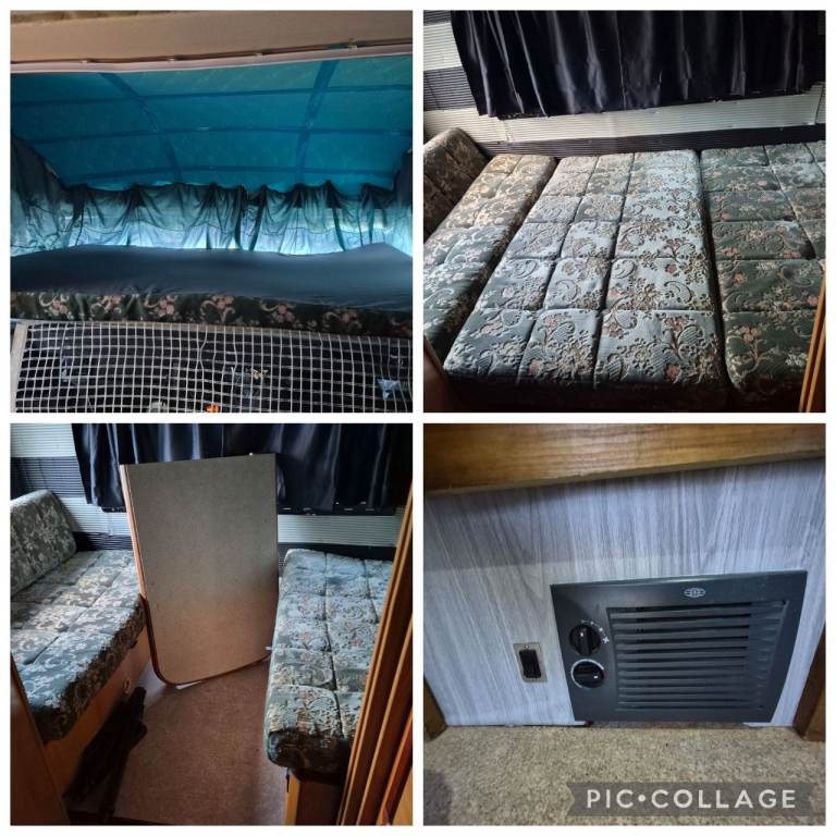 Flexible layout 6 birth, 1 drop down double bed, 1 main diner turns to another double bed or rear diner β we left as a fixed bed. Privacy sliding doors and curtain.