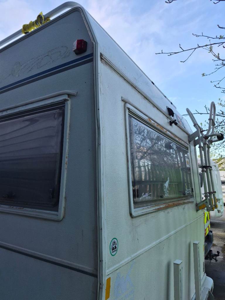 Rear roof ladder, roof bars and back storage box. Original pull out awning, awning legs manual pole, awning sides and Awning skirt.