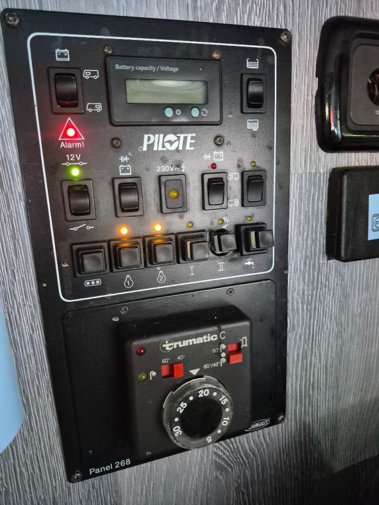 X 2 leisure batteries, Solar panels (can run totally off grid) can charge both vehicle or leisure batteries.