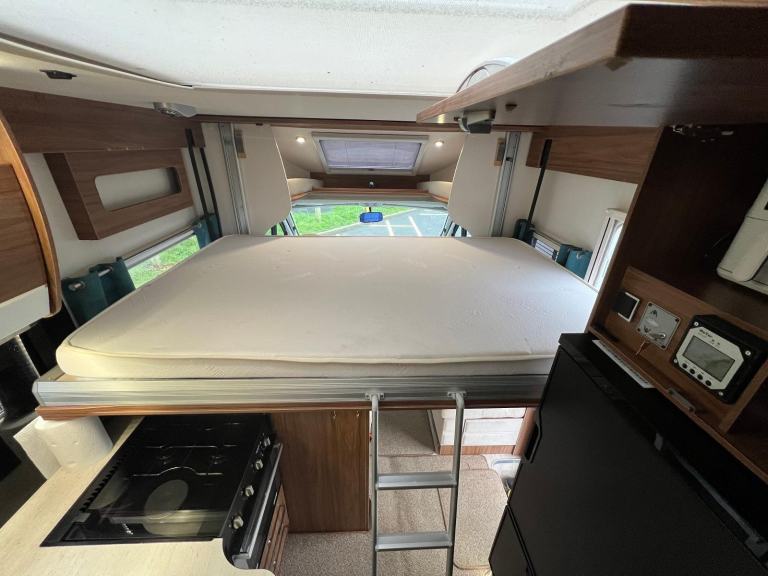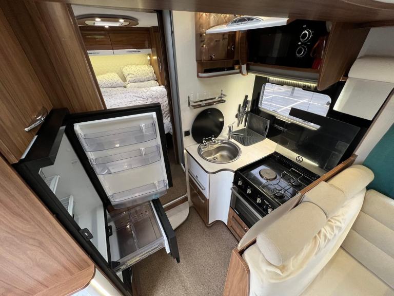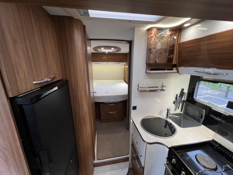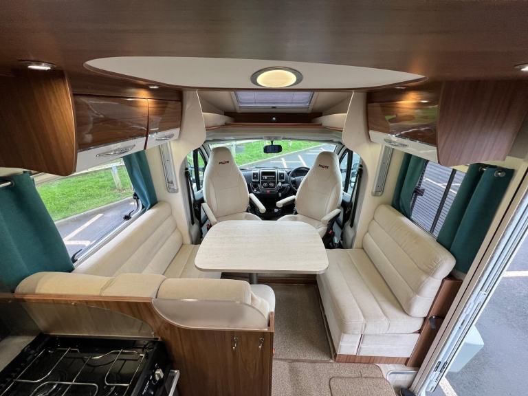 This 2016, 4 berth, Pilote P746 Sensation, with automatic transmission, has travelled 56,596 miles, is up to date for service, comes with new habitation and MOT to March 2026. The basic layout is the rear garage, island double bed above, separate shower enclosure then opposite toilet and sink, forward is the kitchen and front lounge, with electric drop down bed above and 2 swivel seats upfront. There is plenty of storage space throughout. The rear garage has plenty of space for storage and opens on both sides of the motorhome. The island bed above, has storage space below the recently purchased mattress and surrounding storage, includes 2 wardrobes On the nearside is a separate toilet and sink, then opposite a shower with full enclosure. There are 2 privacy doors In the kitchen, is a cooker with 2 gas burners, plus electric hob, then oven and grill, plus microwave. The large fridge freezer is electric only working on mains and 12v supply. A TV is stored here and can be viewed in the bedroom or dinette It has fabric upholstery throughout, with seat protectors. In the front dinette, there is small sofa by the habitation door, plus 2 forward facing travelling seats with seat belts. The table can be moved to create an area for several people to sit down. Above the dinette, is a double bed, which is electric operated. Upfront, are 2 swivel seats, Remis blinds, radio/ CD player with Bluetooth, 6 speed automatic gearbox, cruise control, plus electric windows and mirrors and sunroof above. Other features include 1 Gaslow gas cylinder and steel cylinder, 150W solar panel, wind out canopy, habitation door flyscreen, 2 leisure batteries, plus 4 x 230V sockets. This 150bhp, has GVW of 3500kg, with vehicle immobiliser and alarm for security. Only advisories on MOT since 2020 have been for tyres and wipers. The current owner sold this motorhome and bought it back in 2023, so essentially 2 former owners. The current fridge was fitted in 2024, following a fire with the previous unit. Subsequently, the vehicle has Cat N marker on the insurance records for non-structural damage. Overall, this is a well presented motorhome and should be viewed at the earliest opportunity near Redcar, Cleveland. Part Exchanges welcomed on this vehicle, for further information and photos please call us on 01423 609985 quoting reference 301177