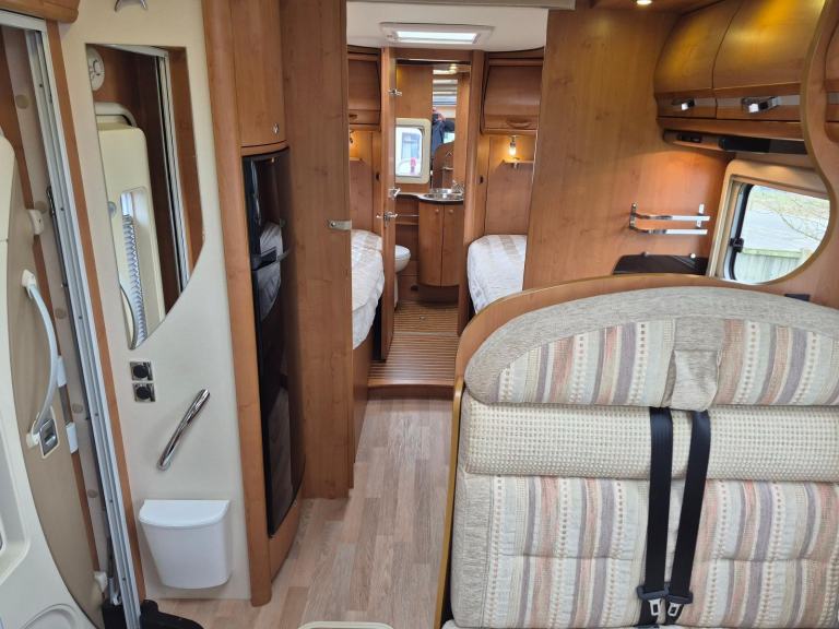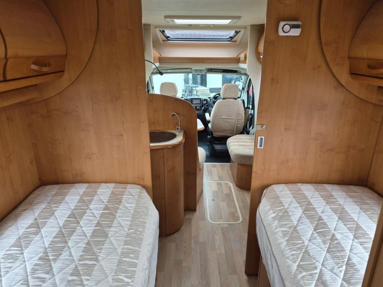 Motorhome Depot are delighted to present this superb Rapido 7065 DF. A premium four berth, four seatbelt coachbuilt motorhome featuring, a bedroom area with twin fixed single beds, a rear washroom with separate shower cubicle, a well-equipped kitchen, large external storage lockers and a great specification.First registered in May 2012, it has had 4 owners and has been with the current owner since Jan 23.OverviewAt the rear is the full width washroom, with SOG toilet, stainless steel sink, separate shower enclosure and good storage space. The bedroom area has two fixed single beds with storage underneath and a range of overhead lockers. There is a sliding door to close the bedroom and washroom off from the rest of the living area.The kitchen comes equipped with everything you need for a touring holiday, twin stainless steel sinks with a mixer tap and a separate tap for filtered water, a large fridge/freezer, hob with three gas burners, a large oven/grill, plus plenty of storage and preparation space.The front lounge/dining area is a lovely bright and open area for mealtimes and relaxing. With an L shaped sofa, side sofa, and the two Captains swivel seats there is room for six around a large fully adjustable dining table. At night-time, this area converts into a second double bed.The Fiat Ducato based cab features the popular 2287cc diesel engine linked to a six-speed manual gearbox, there are 2 swivel seats, CD/radio, air con, reversing & rear-view camera, cruise control, electric windows and mirrors and concertina blinds.The Rapido has only covered 30287 miles, with the cambelt & water pump replaced in 2023 ,MOT until Feb 27 and serviced in Jan 2025, The chassis is the excellent ALKO and the GVW is only 3500kg.Additional features include a BBQ point, external shower, awning, solar panel, strike back Cat 1 alarm, bike rack and satellite dome.For more information please do not hesitate to contact meViewing available at IP14
