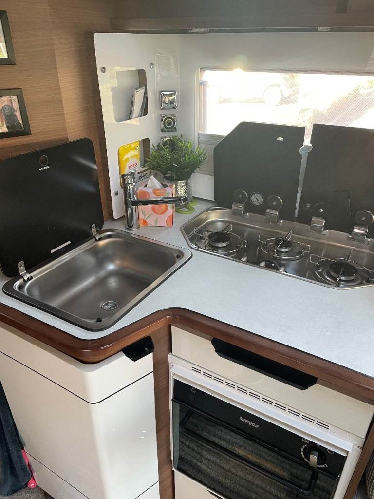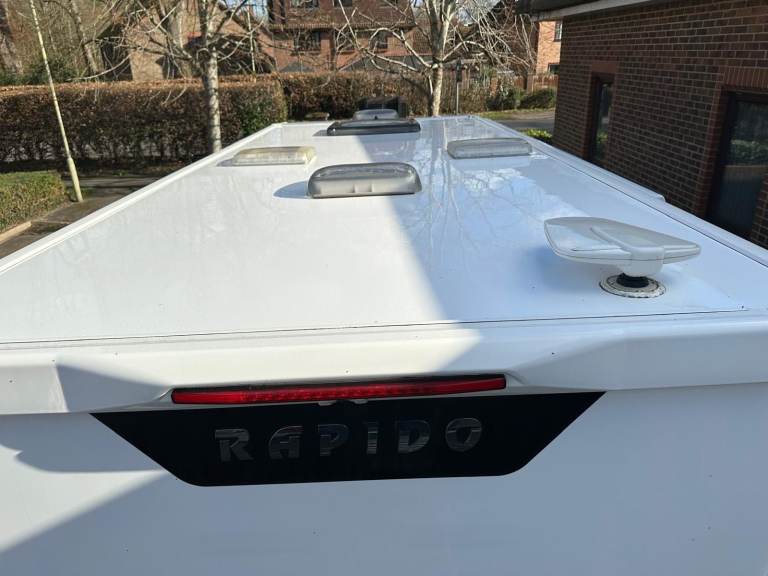 RAPIDO GB RHD (Traction+ with Hill Descent Control (FIAT), Fog lights, Radio control on steering wheel, Outside rear mirrors with double view (wide angle) (A-CLASS), Leather steering wheel and gear knob, Chromed instruments, Black Piano dashboard cladding, Carpet kit (cab and living area), Oven, Truma Combi 6EH with CP PLUS , Folding table, 3 burner kitchen hob , 2nd living area battery, Heated wastewater tank, Outside shower warm/cold water, Rear steadie