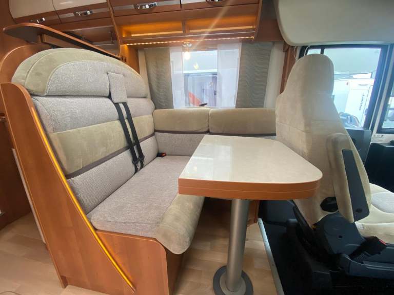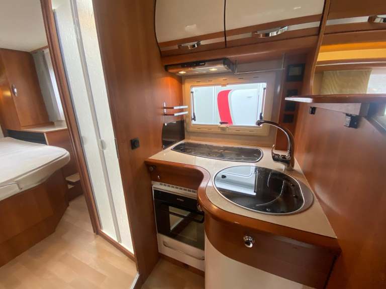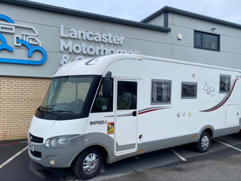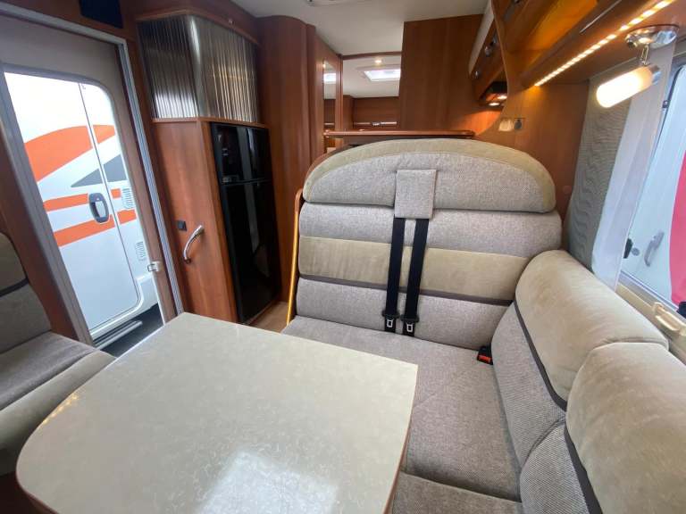 Rapido 890F Design built on a 2.3 Fiat cab with a 6-speed manual gear box. A beautiful A-Class motorhome with 4 berths and 4 travel seats. The layout consists of a large Island bed, located over a large garage area. Ideal for extended touring trips with room to take everything you may need. With a centrally located separate toilet and shower cubicle, on from here you have well equipped kitchen area with hob, oven, sink and large fridge freezer.