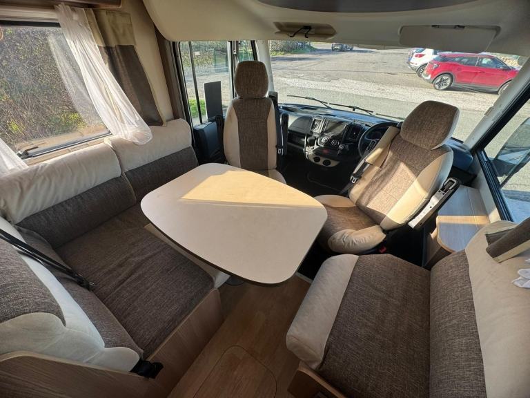 Motorhome Depot Farnsfield Retail site proudly presents this excellent example of Rapido's Le Randonneur 866F. This A-Class family 4 berth, 4 belt motorhome is built on the popular Fiat chassis with 2.3 litre diesel engine, spanning 7.4 meters in length and 2.3 meters wide, 3850KG. In true A-Class style, enjoy a spacious and open plan seating area that incorporates the captains seats to easily accommodate up to five adults around the multifunctional table. Seating is adorned with a stylish, neutral mix of soft cotton edging with a hard wearing centre. Featuring an over cab double pull down bed. The Rapido's kitchen comprises of a widely desirable tall three-way fridge with separate freezer above; a combi oven/grill; three gas hobs, sink and utensil storage. The double skinned floor offers an extra large storage compartment that can be found in the floor centre of the kitchen. As we move towards the rear of the motorhome, next we are greeted by another popular feature of this motorhome; a separate, clean and well lit shower cubicle to the right, with toilet, wash basin and vanity unit on the opposite side of the corridor. For complete privacy, use the sliding door to close off the rear bedroom from the rest of the motorhome. For those who prefer the ease of a fixed bed, enjoy the 866F's twin beds with in-fill piece to create a spacious double bed if preferred. Being a mid-sized bed, access is exceptionally easy, and with the help of the broad central step up to the bed, you will not have any difficulties getting out of bed without disturbing one and other. The bed of course is built above a large garage. If you still need persuading just how many boxes the Rapido 866F ticks, you will no doubt be pleased to know that it is kitted out a solar panel for off grid camping; and TV is already fitted and ready for you to stay up-to-date with your favourite entertainment whilst enjoying food and drink around the dining table; cruise control, Alarm and Tracker, cab blinds, cab air-conditioning and reversing camera are all at your disposal; Truma dual fuel heating and hot water available; air suspension and more. Could this be the motorhome for you? Please contact us to arrange a viewing. Please note, this vehicle is not a brokerage unit and as such means that it is compliant with the Consumer Rights Act 2015.