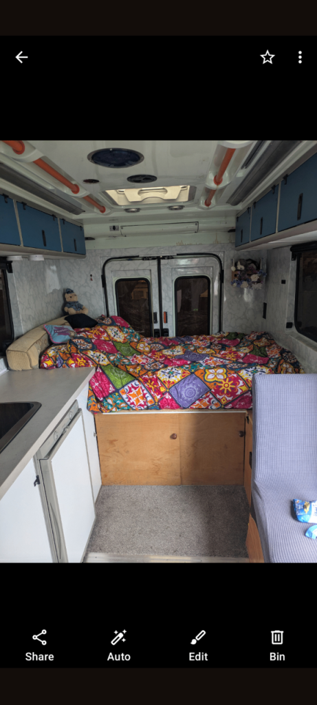 Bought stripped and converted ourselves with comfort and practicality in mind —