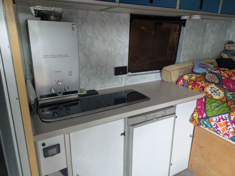 Ex-ambulance body provides extra interior width compared to standard vans and extra height. Spacious, practical layout with plenty of storage. Reliable and ready for adventures or off-grid living.