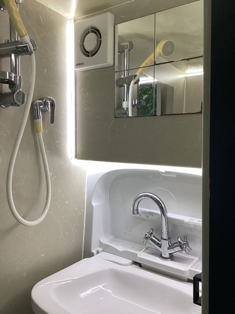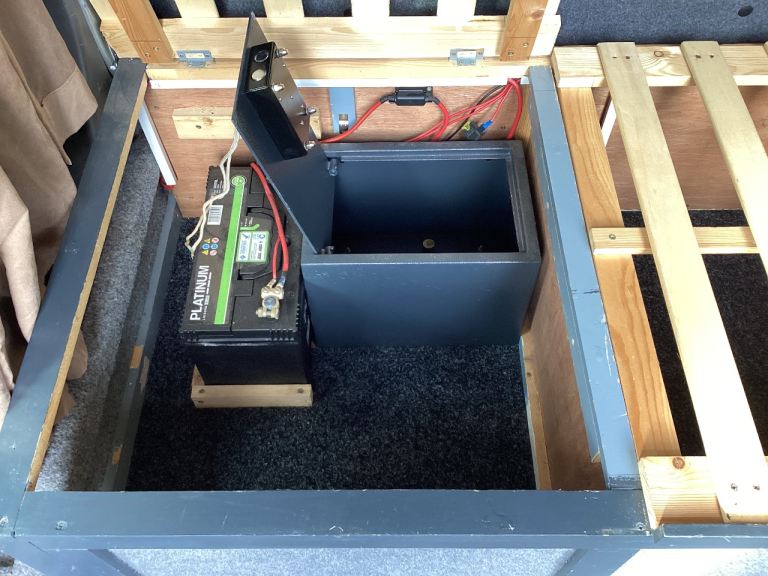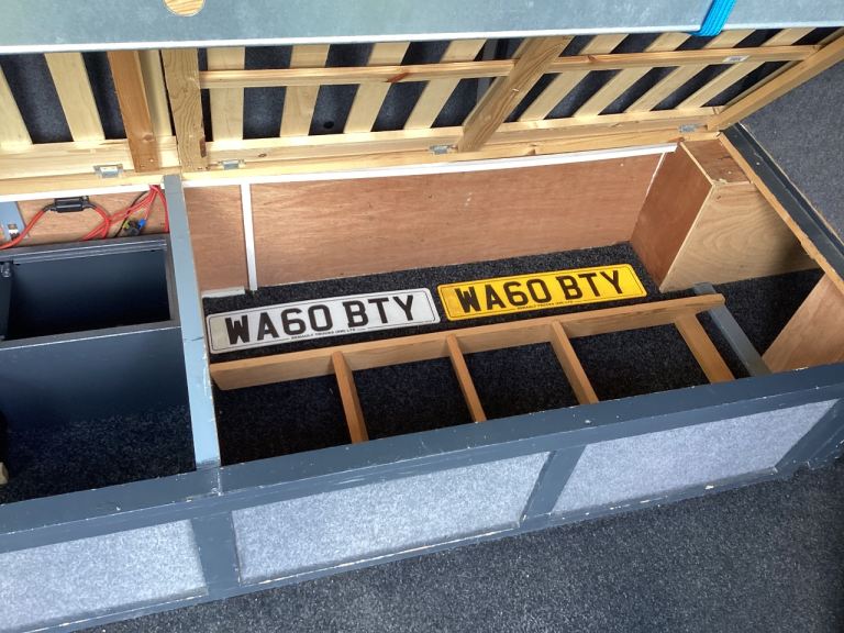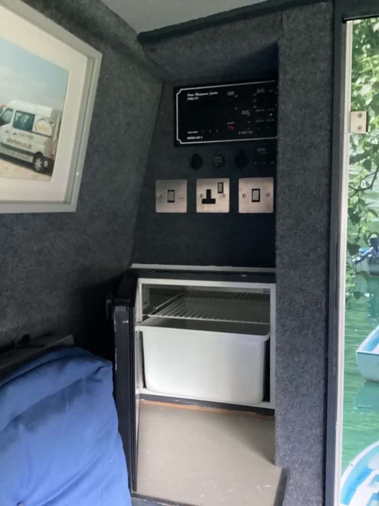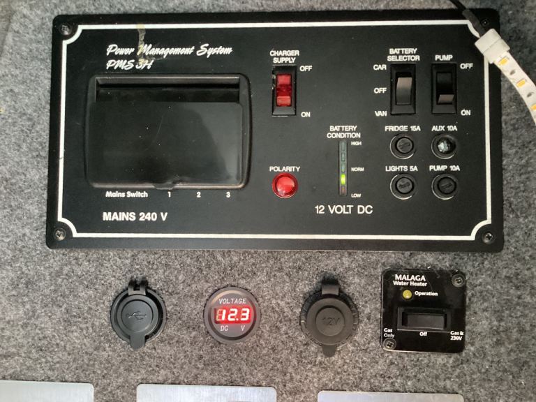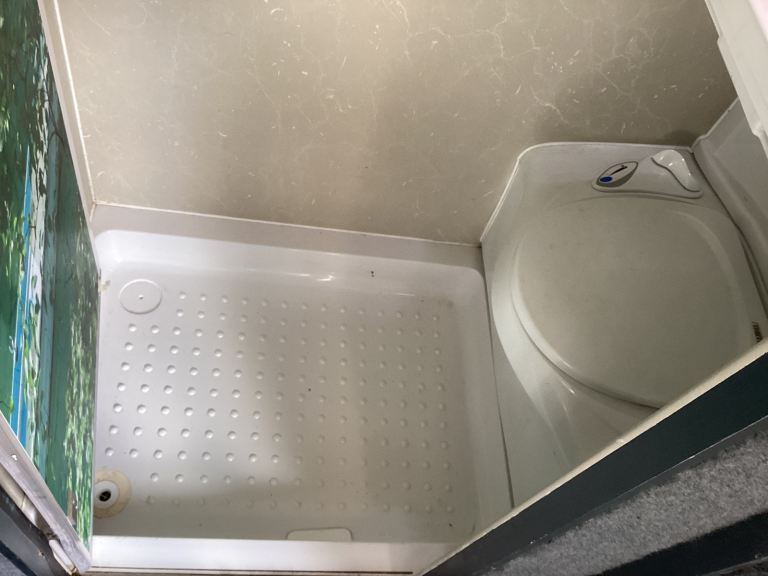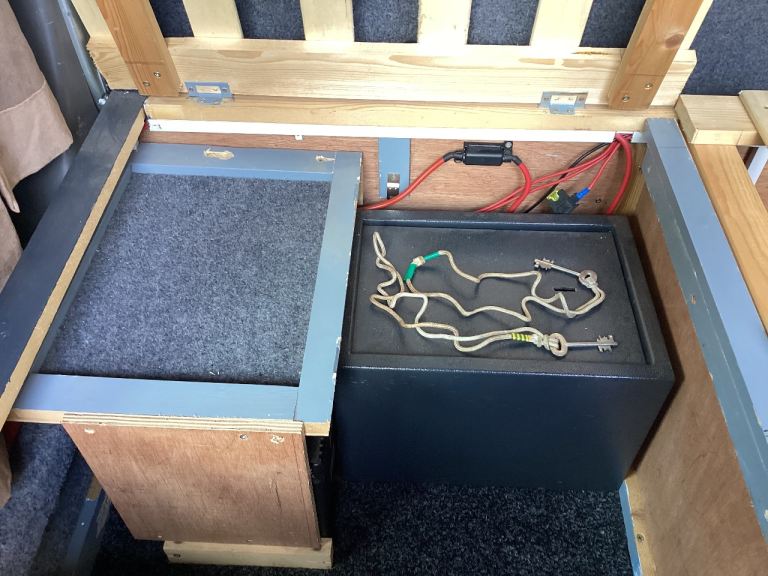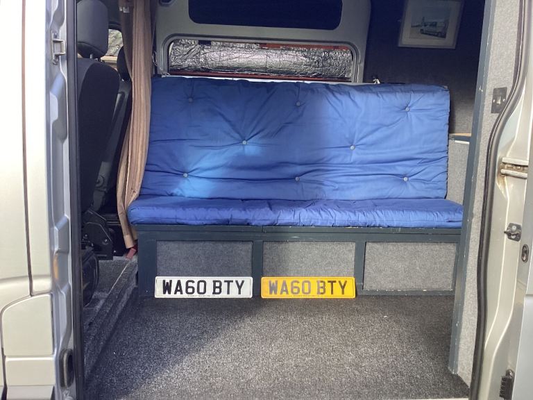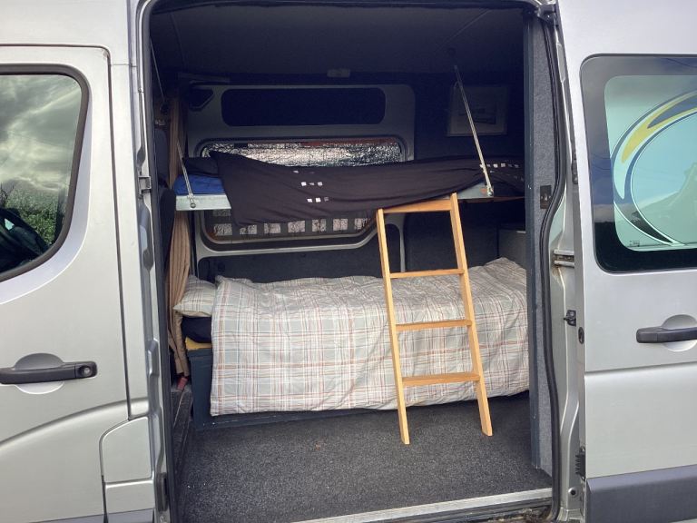 Two berth (bunk beds), two seater campervan, in excellent order with hot and cold running water. Huge onboard water tank. Hot shower, toilet, small fridge, split charging system, and electric hook up. It has no onboard cooking facilities. Inbuilt safe with two keys.
