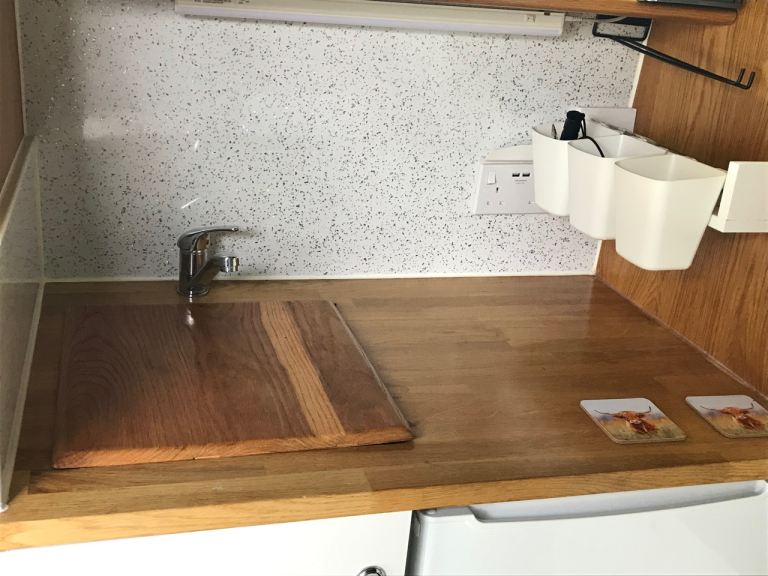 There is a sink, toilet, microwave, hotplate, fridge, kettle, toaster, crockery, gas stove and canisters, large inflatable awning, Milenco ramps, blackout curtains/blinds all new.