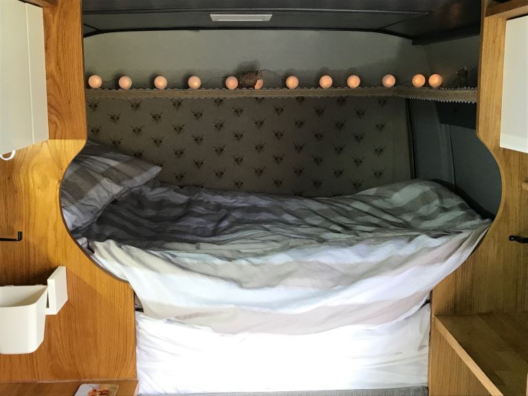The double bed has a brand new mattress and pillows, and a new mattress topper for the single pull out bed.