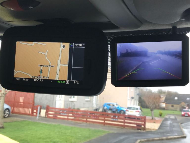 Parking sensors front/back and reversing camera and built-in sat nav with remote.