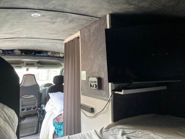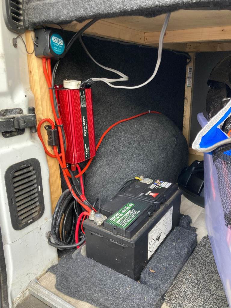 There's quite a large boot space under the bed in the back, with a leisure battery with a inverter in the back, so you can run the TV and kettle etc without being hooked up. I will also include a 15M cable with 4 sockets, which you can use to hook up the van at campsites.