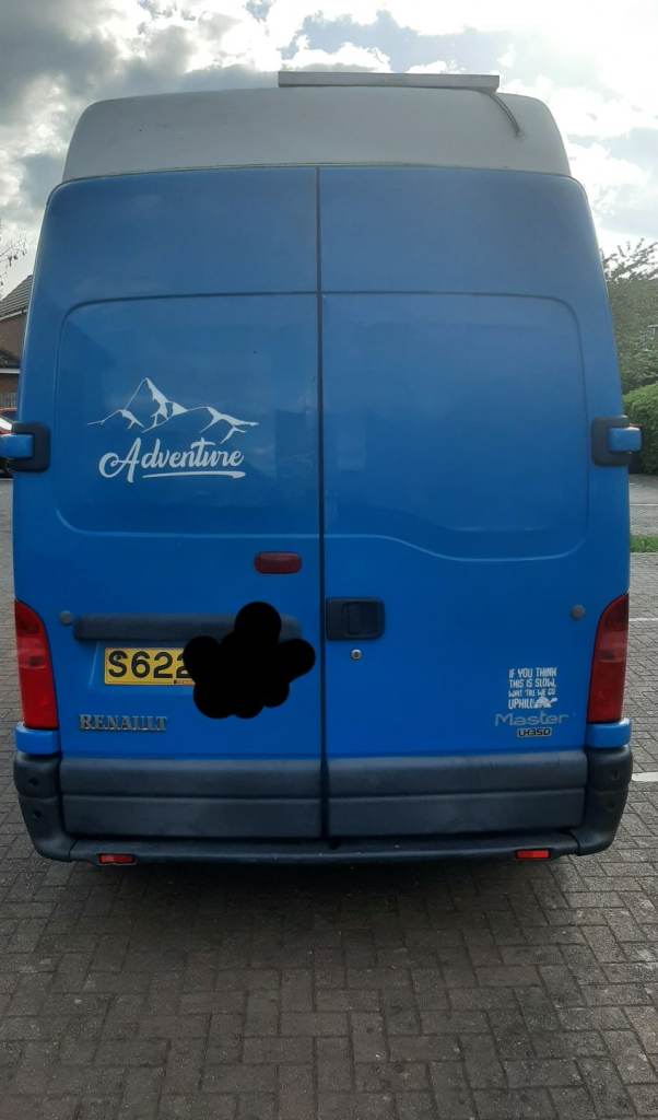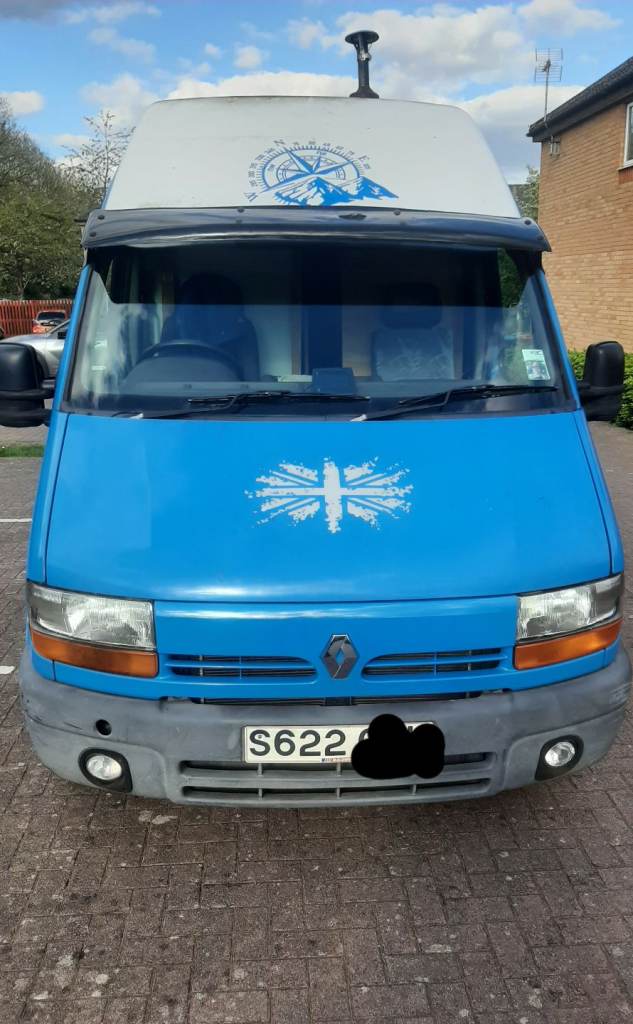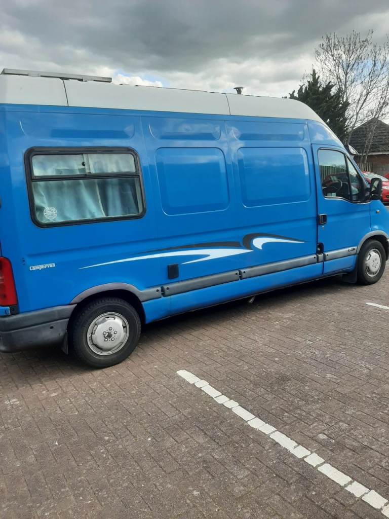 Hi here for sale,Renault Master 1998 3.5 tonne high top,long wheel base Camper,its a 2.5d 5 speed engine it's bulletproof and hasn't missed a beat,very reliable,just under 92k miles,all recent tyres,recent brakes done all round,cab cigg lighter is temperamental and front heating never been that great(but never bothered me,living area is fully insulated with celetex and vapor barrier from floor to ceiling,it has a micro wood burner fitted,wet room 12 volt self fill shower/porta loo(Thetford type)200watt solar panel and controller,12 volt socket/240 volt hook up(camping site leads,camping gaz stove,12 volt diesel heater,it has age related marks,mot until January 30th 2027,genuine reason for sale is that I'm looking to downsize to a smaller van,it could do with a little bit of tlc but other than that a great camper for the price,ready to go,any questions welcome,genuine interest only £4000 ono