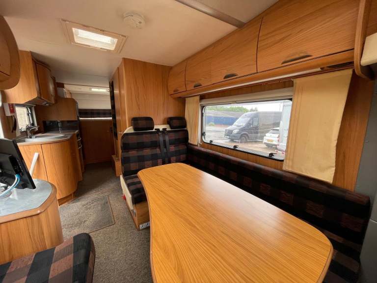 HERE WE HAVE A TOP OF RANGE TAG AXLE BURSTNER 4/5 BERTH MOTOR HOME . LARGE REAR GARAGE . REAR FIXED DOUBLE BED CENTRE DINETE THAT MAKES LARGE DOUBLE BED, FRONT SWIVEL SEATS SO MAKES GREAT DINNING AREA . BATHROOM WITH FLUSH TOILET SHOWER WASH BASIN AND VANITY UNIT , FULL SIZE FRIDGE FREEZER HOB AND GRILL MICROWAVE OVEN TV AND DVD PLAYER REVERSE CAMERA AIR CONDITIONING REAR SEAT BELTS BLOW AIR HEATING ON BOARD FRESH AND WASTE WATER TANKS 12/240 VOLT HOOK UP FLY SCREENS AND BLINDS TO ALL WINDOWS SOLAR PANAL SATILITE DISH REAR SEAT BELTS BIKE RACK LARGE WIND OUT SIDE AWNING AND LOTS MORE SOLD WITH 12 MONTHS MOT WARRANTY AND HABITATION CHECK MAY PX TEL 01274 687800 OR [Phone number removed]