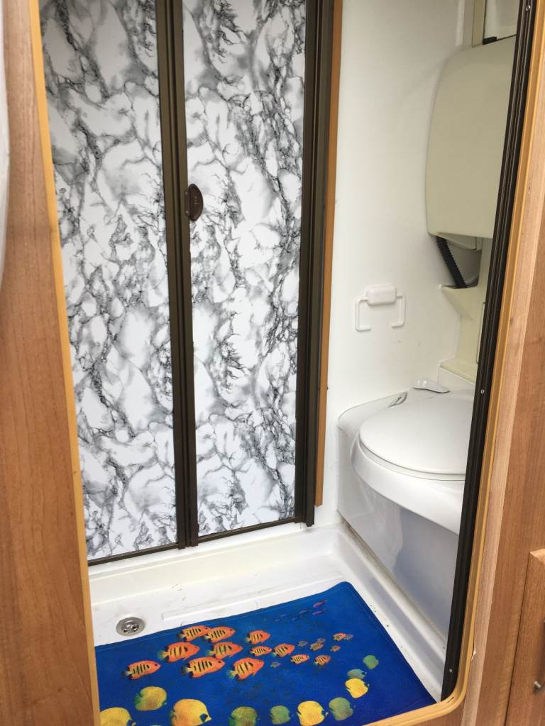 CASSETTE TOILET,FOLD DOWN SINK WITH TAP AND SHOWER GARAGE (WITH INTERNAL DOOR) BIFOLD DOOR TO SEPARATE BATHROOM FROM LIVING AREA