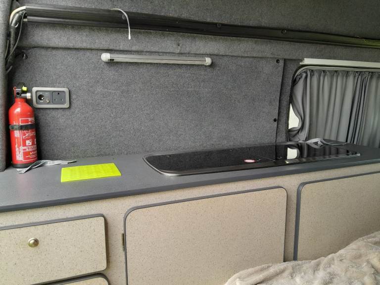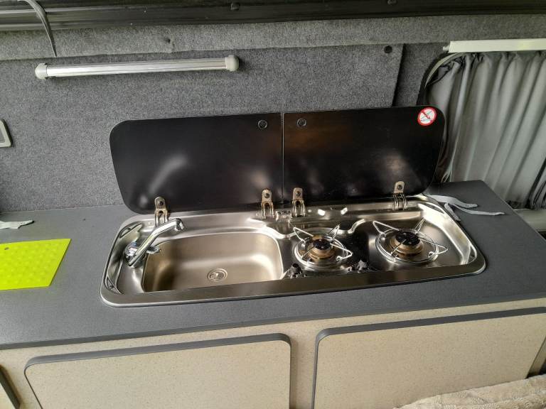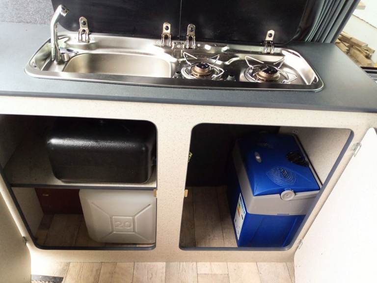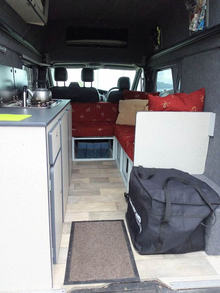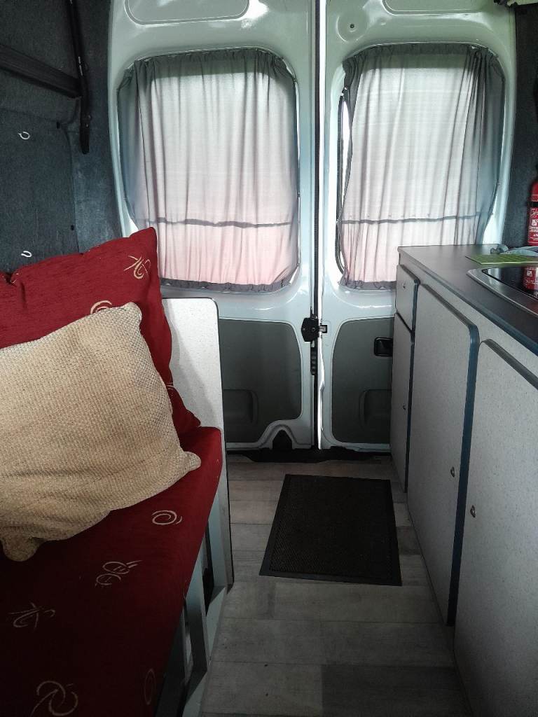 Comes with custom diamond pattern pvc front seat covers, 4 large rear windows & fitted curtains, large kitchen units with built in domitec combi sink and 2 gas burner, fire extinguisher, waste & fresh water tanks n pump & small gas tank as well as electric cool box as in photos.