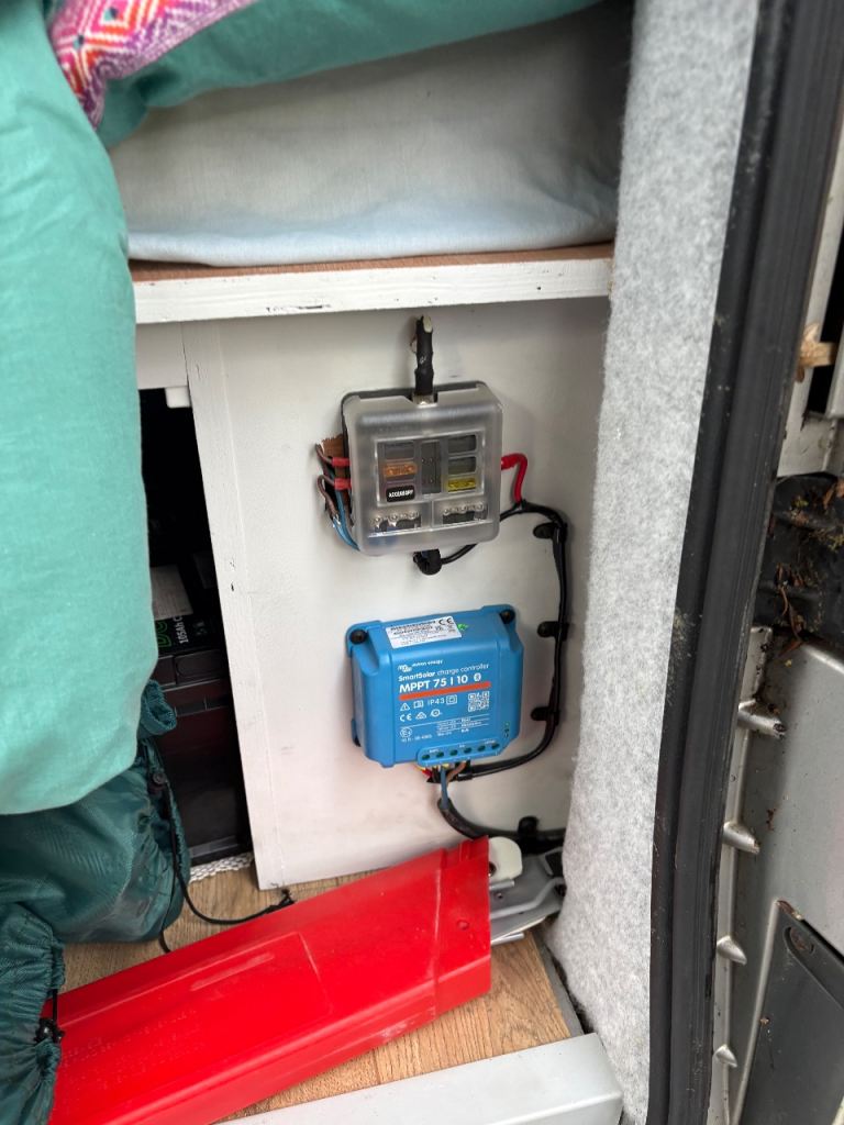 • Professionally fitted solar panel on the roof hooked up leisure battery.