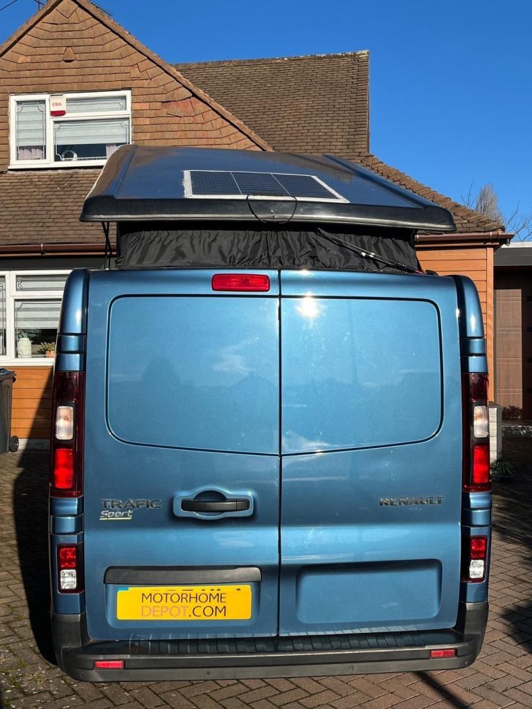 Motorhome Depot are happy to present this Renault Trafic Sport Pop Top campervan, first registered in January 2016 this van has covered just 95,621 miles from new and it is based on the ever popular short wheelbase S217 Sport with the 120Bhp 6 speed manual gearbox. With 4 berths and 5 seat belts this van would work well for either a family or for a couple / solo traveler. This Campervan has just had a service, (February 2026) and a new MOT to 10th February 2027 ready for the new season, so is already for someone to enjoy their new adventures.Once inside the van the first thing you notice is the feeling of space, it is well laid out and has the advantage of kitchen area with two burner hob, sink with tap, concealed fridge under the worktop and a good deal of worktop space, there are also two very smartly designed fold away tables in the kitchen area. The rock and roll bed seating easily converts to a double bed and with the pop top extended you have a second large double sleeping area above, the pop top has three zip down windows and the pop top sides can be fully unzipped to create a "scenic" open space.The twin front passenger seats swivel in to the habitation area creating a great dining and socialising space for up to five people, heating is provided by a diesel heater and 12V power is supplied by a an AGM 110AH leisure battery, supported by a 130W solar panel, there is stylish LED lighting, charging points, 12V and plug points available. Electric hook up point is within rear of the van and there is plenty of storage options available. Night time comfort is provided with the on board porta-potti.For driver comfort the cab is complete with cab air conditioning, cruise control, satellite navigation, bluetooth connectivity, radio, automatic lights and wipers, electric windows and electrically adjustable mirrors and reversing sensors..This van is located in Birmingham B44Main Features130W Solar PanelAGM 110 AH Leisure BatterySatellite NavigationCab Air ConditioningCruise ControlBluetoothAutomatic Lights / WipersDiesel HeaterPorta-PottiScenic Pop TopUndercounter FridgeTwin burner HobSinkRock & Roll BedReversing SensorsFor further details, more pictures and video please contact us on the numbers or email above.Viewings by appointment only