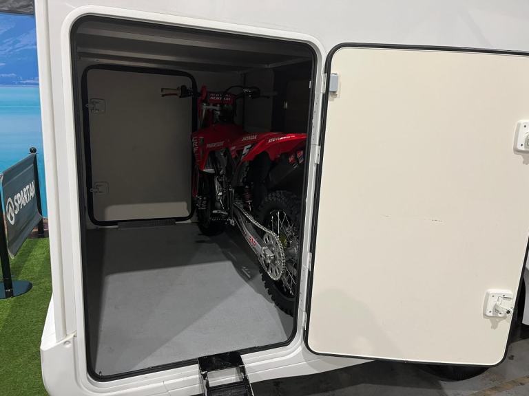This lovely Remor Sarus 5 has done only 7013miles. A spacious and well laid out 6-berth family motorhome built on the Fiat chassis, with large garage area | 6-berth/6-belt | Large garage suitable for motor sports | Practical kitchen with large fridge, freezer, Gas hob, oven, grill, sink and ample work surface | Washroom with wc, basin, storage cupboard and separated shower cubicle | Rear fix double bed | Over cab fixed double bed | Additional dinette conversion double bed | Generous lounge/dining area | Swivel driver & passenger seats to create additional seating | Reversing camera | Hands free radio/media/satnav system | Cruise control | Cab air-conditioning | Truma blow air heating & hot water system |Alarm | Good range of storage throughout | Price = £45,834 + vat | Note that the MX bike is shown as example only to demonstrate garage space - not included in the sale | For additional photos, further information or to arrange a viewing appointment, please contact Julian on 01246 382388