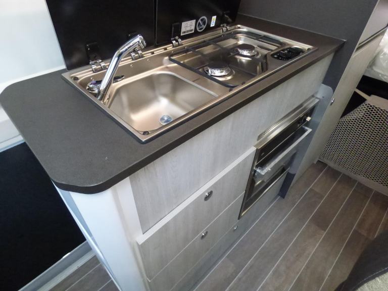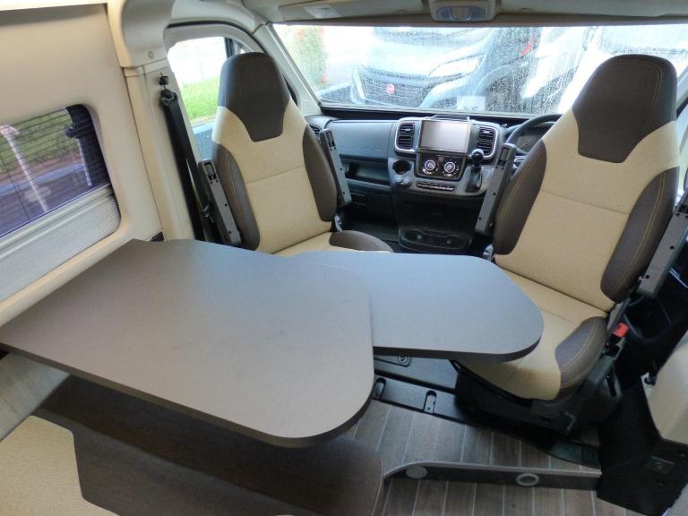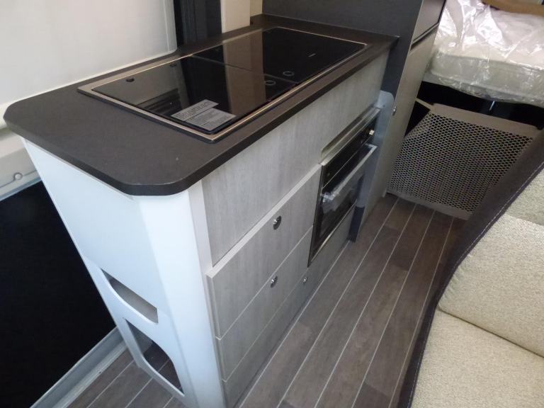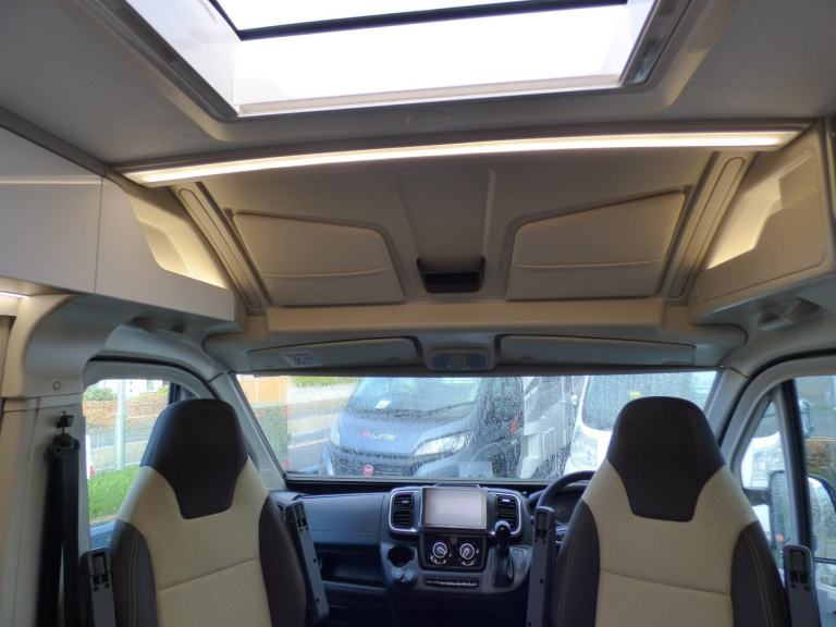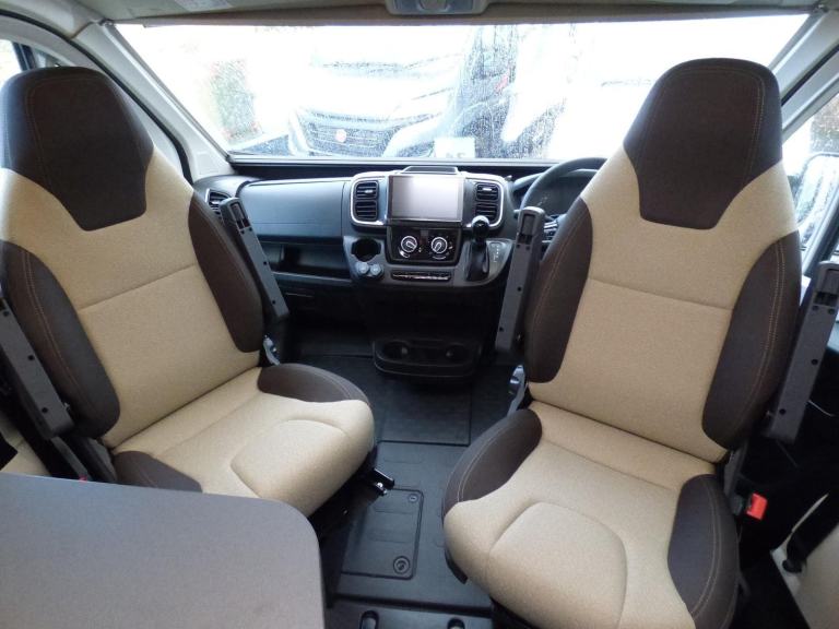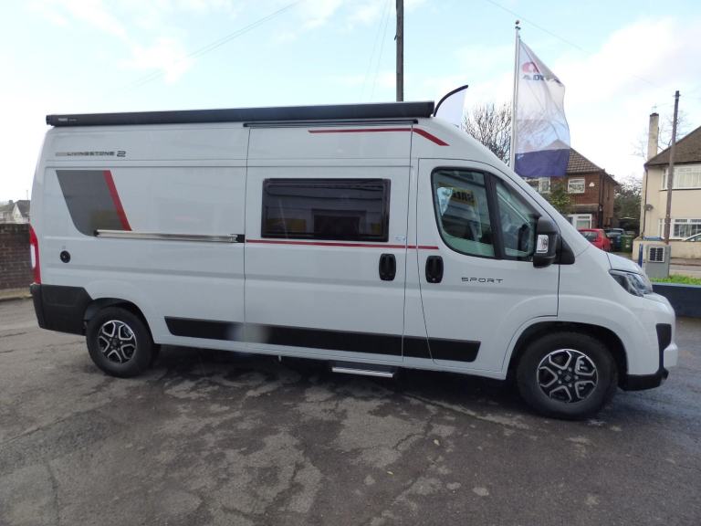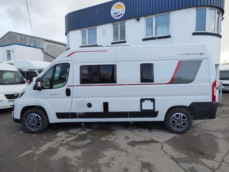Step inside the Livingstone 2 Sport and enter a world of refined comfort and practicality. Whether you’re exploring rugged coastlines or serene countryside, this campervan transforms every trip into a chic, unforgettable adventure, inviting you to discover the joy of the journey with sophistication and ease. Based on the Fiat Ducato chassis with 140bhp engine and 8 speed automatic transmission, the Livingstone 2 Sport is laid out for 4 to travel in comfort with the front seats swivelling to form a dinette and the side kitchen fitted with a 90l dual access fridge, single gas burner hob and a gas oven. Opposite the bathroom features a folding door and fold away sink above a cassette type toilet and a wet room style shower cubicle. The rear transverse bed is a good size double and folds away enabling larger items, bikes etc. to be carried. Ample cupboard space throughout and heating is via a Webasto diesel system with dual fuel water heating. Other features of this Livingstone 2 Sport include: Alloy wheels, Pioneer infotainent/sat nav, wind out awning, solar panel, pleated cab blinds, electric step and the latest Fiat cab. L. 5.99m, W. 2.05m, H, 2.85m, 3,500kg. 3 berth, 4 seat belts. Delivery Miles. Features Include: 200w solar panel with mppt controller, alloy wheels, automatic transmission, electric step, flyscreen for sliding door, pleated cab blinds, reversing camera, thule awning