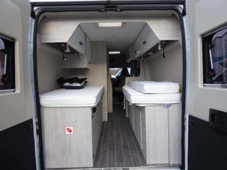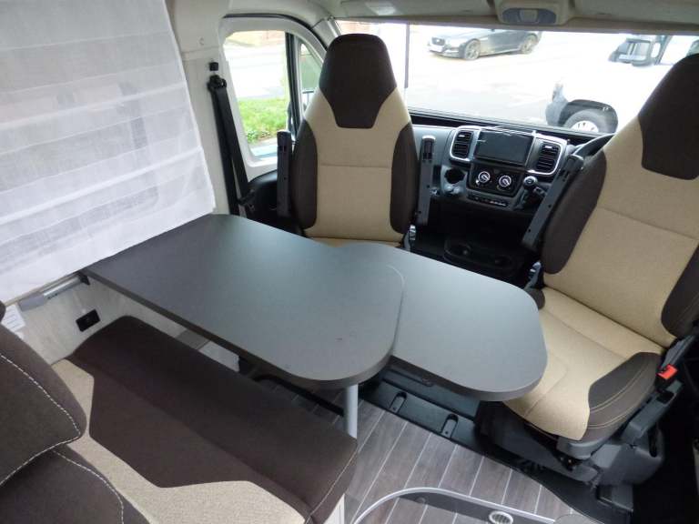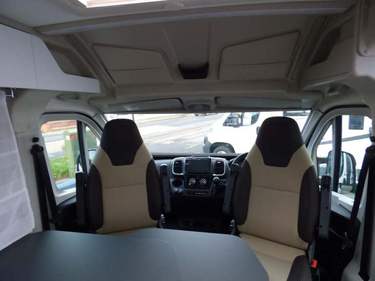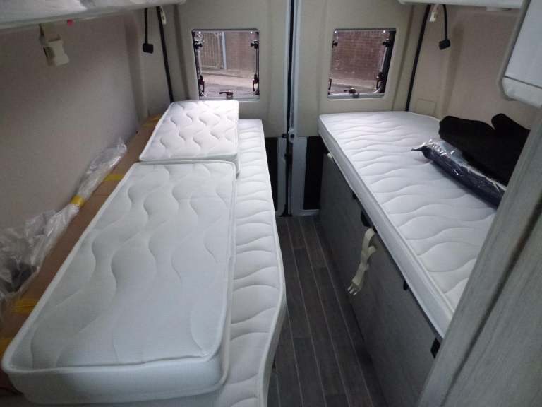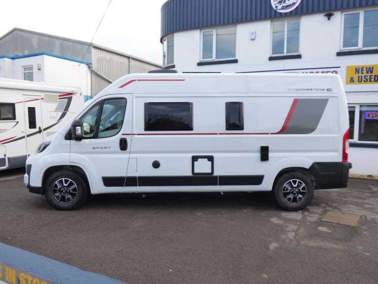 This Livingstone 6 includes the Livingstone pack, the pack includes electric step, Pleated cab blinds, midi heki light (70x50) and an external light. The cost of the pack is £995.00. In addition to the Livingstone pack the vehicle is also fitted with an awning at a cost of £660.00. Step inside the Livingstone 6 Sport and enter a world of refined comfort and practicality. Whether you’re exploring rugged coastlines or serene countryside, this campervan transforms every trip into a chic, unforgettable adventure, inviting you to discover the joy of the journey with sophistication and ease. Based on the Fiat Ducato chassis with 140bhp engine and 6 speed manual transmission, the Livingstone 6 Sport is laid out for 4 to travel in comfort with the front seats swivelling to form a dinette and the side kitchen fitted with a Dometic fridge, twin gas burner hob and a gas oven. Opposite the bathroom features a fold away sink above a cassette type toilet and a wet room style shower cubicle. The rear bedroom has longitudinal twin beds that can turn into a good size double and fold away enabling larger items, bikes etc. to be carried. Ample cupboard space throughout and heating is via a Webasto diesel system with dual fuel water heating. Other features of this Livingstone 6 Sport include: Alloy wheels, Pioneer infotainent/sat nav, wind out awning, solar panel, pleated cab blinds, electric step and the latest Fiat cab. L. 5.99m, W. 2.05m, H, 2.85m, 3,500kg. 3 berth, 4 seat belts. Delivery Miles. Features Include: 200w solar panel with mppt controller, alloy wheels, electric step, pleated cab blinds, reversing camera, solar panel, thule awning, free prestige pack worth £1655!