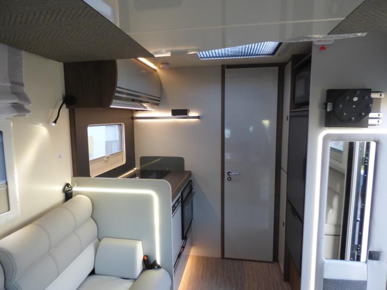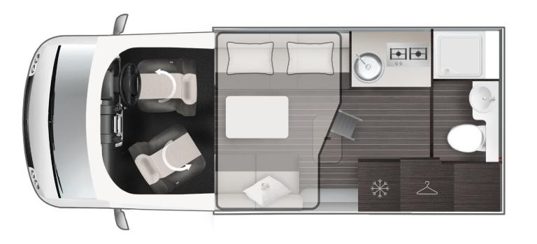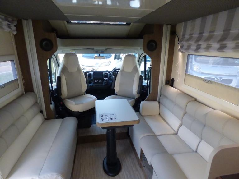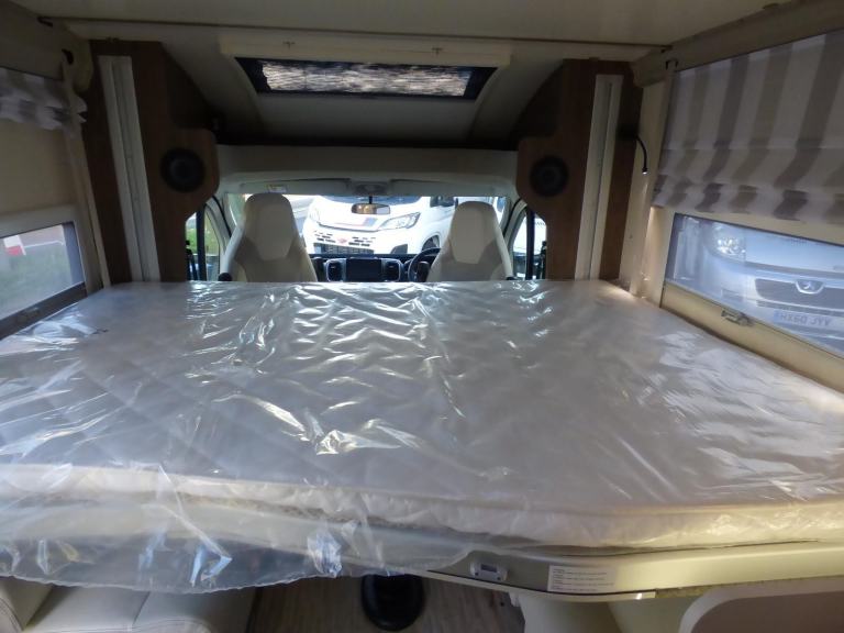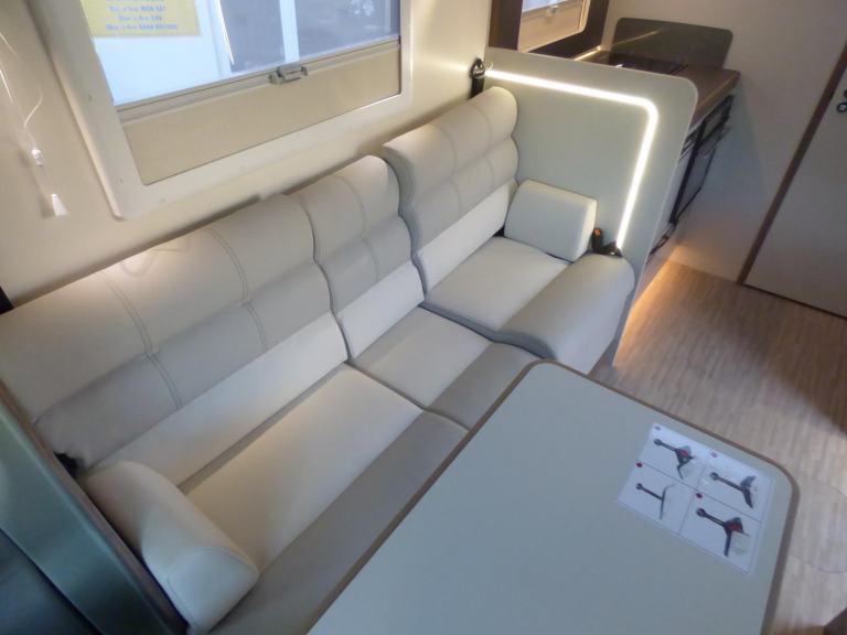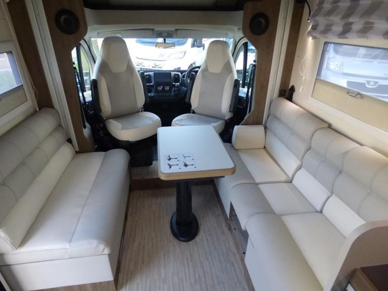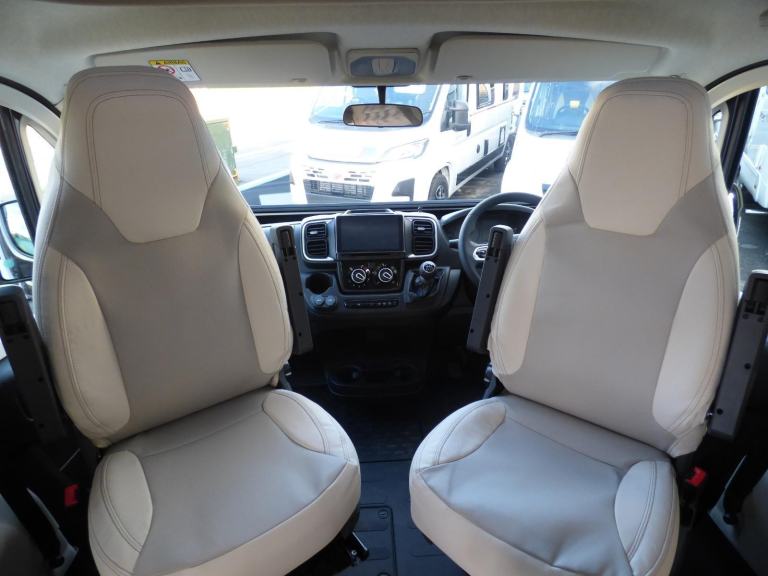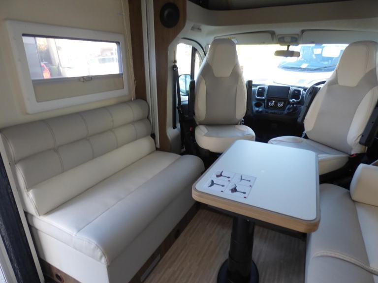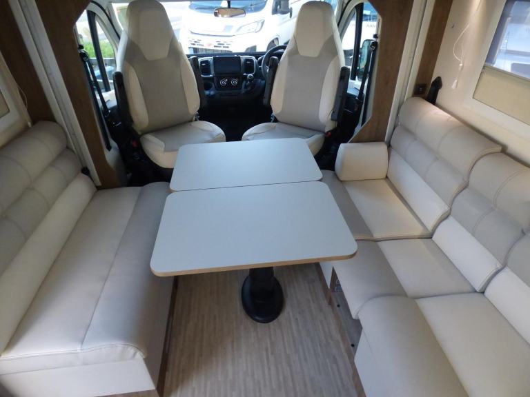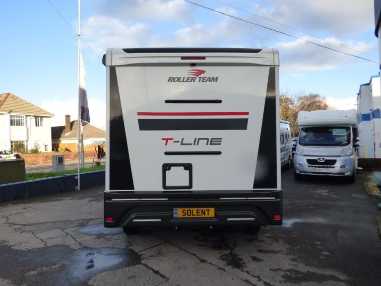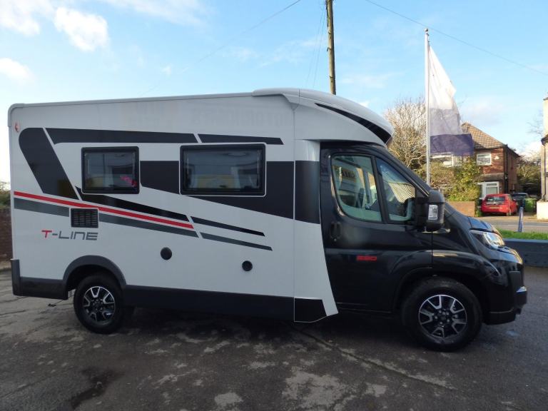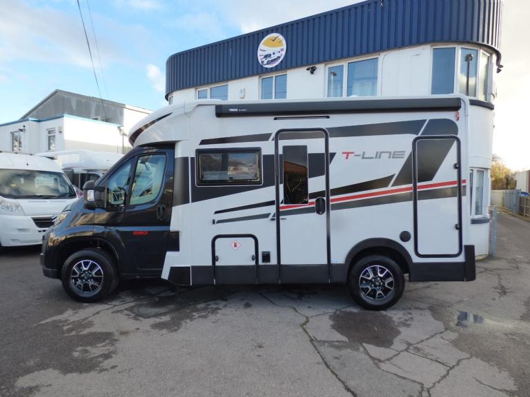 Brand New 2026 Model T-Line 590 140bhp manual in stock now. A Fantastic new layout to the T-Line range, the new 590 model provides new lounge set up and a host of new features but maintains the price point from the 2025 model. The lounge area is laid out as two opposing sofas with the front seats swivelling to accommodate 6 with ease. The large elevating bed over simply drops down for evening use. The central kitchen is fitted with a gas hob, gas oven/grill and a new compressor fridge/freezer. The rear bathroom has a separate shower cubicle, cassette type toilet and a wash hand basin along with access to the rear storage area. Heating and hot water is via a Truma dual fuel system and other features for this T-Line 590 include: Alloy Wheels, Pioneer infotainment system, Twin 200w solar panels with MPPT controllers, Twin leisure batteries, Fiamma bike rack, Thule wind out awning, External BBQ and Shower points, WiFi, pleated cab blinds, carpets and ISOfix child seat fixings. 4 berth, 4 seat belts, L. 5.99m, W. 2.35m, H. 2.95m, 3,500kg, delivery miles. Features Include: 4g wifi, alloy wheels, carpets, iso fix child seat fixings, pioneer sat nav/infotainment system, pleated cab blinds, reversing camera, thule 4 bike rack, thule awning, tv bracket, twin 200w solar panels with twin mppt controllers, twin leisure batteries
