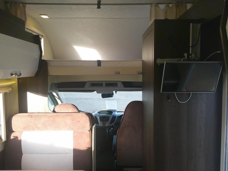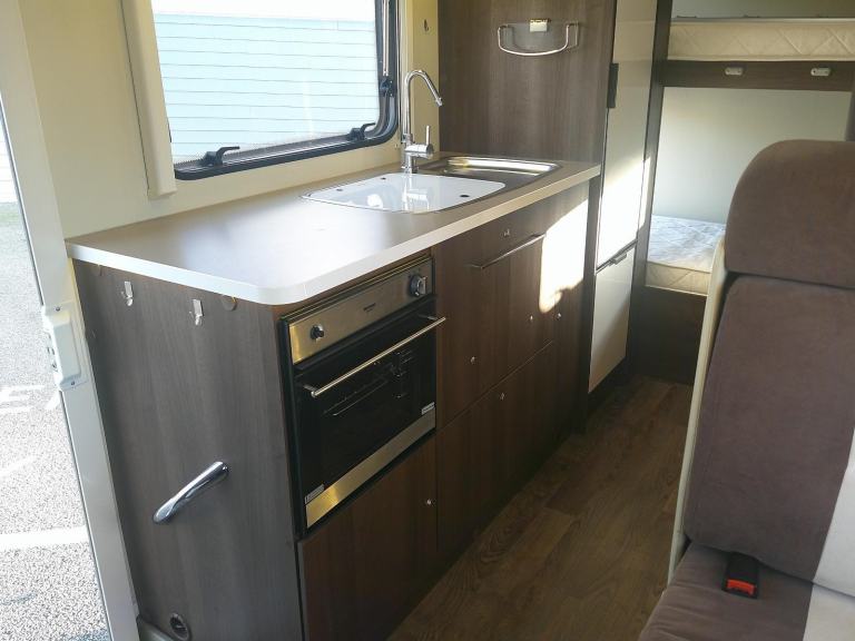 This 6 berth Rollerteam Zefiro 675 is based on the Ford 2.2td chassis with a 6 speed manual gearbox. The layout consists of 2x rear transverse bunkbeds, side kitchen, bathroom with a separate shower opposite, front double dinette with 4 seat belts-two 3 point belts and two with lap belts, followed by a large overcab bed. The spec consists of blown air heating, oven/grill, 3 burner hob, large 3 way fridge freezer, water tanks, blinds and flyscreens, double glazing, silver screens for the cab windscreen, large garage for storage., Features Include: air conditioning, bluetooth connection, bunk beds, double bed, shower, wardrobe, 3-burner hob, 3-way fridge, fridge, fridge freezer, hob, kitchen, oven, sink/drainer, 3 point seatbelts, central locking, electric windows, power steering, cruise control, power steering, abs, air bag, passenger airbag, immobiliser, radio, stereo, tv aerial, front armrest, colour coded body, 3 way fridge, 4 rear seat belts, awning, battery charger, bike rack, bluetooth hands free, cab air con, cassette toilet, cruise control, fresh water tank, fridge, garage, heater, hob, hot water, leisure battery, mains hookup, oven, passenger air bag, reversing camera, separate shower, solar panel, toilet and shower, tv, tv aerial, under 3500kg