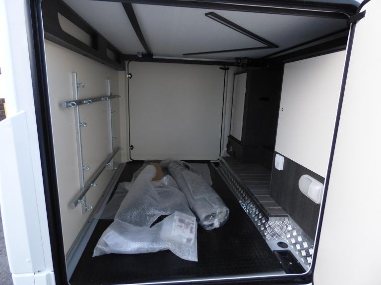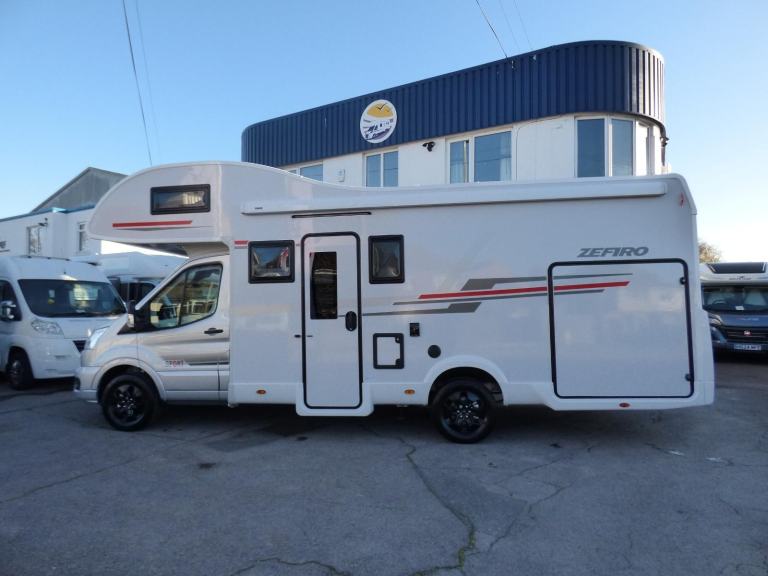 Just Arrived! New 2026 Model Zefiro Sport based on the Ford Transit chassis with 165bhp engine and 8 speed automatic transmission with the Ford 12" screen infotainment system, front parking sensors and Zefiro Driver's Pack. The huge rear garage with electric elevating bed over makes this particularly popular for sports orientated users such as Motocross and Karting. The large double bed over the cab and the rear bed mean that four can sleep in comfort and the dinette area has swivelling front seats, so 4 can dine with ease. The well equipped kitchen features a 3 burner gas hob, gas oven/grill and large fridge/freezer with lower bottle compartment. The Zefiro Sport bathroom has a separate shower cubicle and basin with cassette type toilet. The habitation area benefits from a Truma hot water/heating system with the latest Truma iNetX control system, 200w solar panel, LED lighting, TV Bracket, Thule wind out awning, Pleated Cab Blinds, Reversing camera, External BBQ & shower points, 4G WiFi,, ISOfix and carpets. L. 7.43m, W. 2.35m, H 3.2m, 3,500kg, 4 berth/4 seatbelts, Delivery Miles. Features Include: 165bhp engine, 200w solar panel with mppt controller, 4g wifi, alloy wheels, automatic transmission, cab a/c, carpets, external gas bbq point, external shower point, factory zefiro driver's pack, flyscreen for hab door, ford 12, front parking sensors, iso fix child seat fixings, pleated cab blinds, rear garage, reversing camera, separate shower cubicle, thule awning, tv bracket