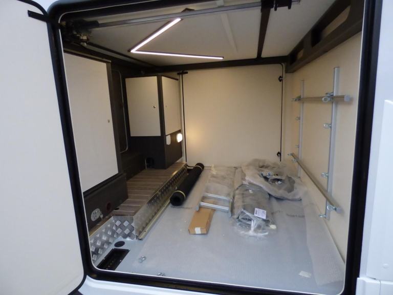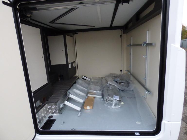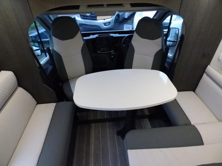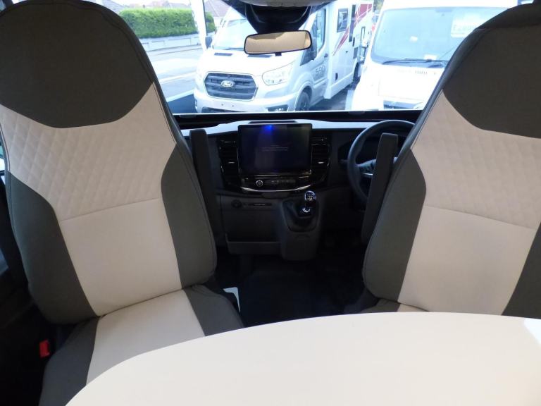 Just Arrived! New 2026 Model Zefiiro Sport based on the Ford Transit chassis with 130bhp engine and 6 speed manual transmission with the Ford 12" screen infotainment system and front parking sensors. The huge rear garage with electric elevating bed over makes this particularly popular for sports orientated users such as Motocross and Karting. The large double bed over the cab and the rear bed means that four can sleep in comfort and the dinette area has swivelling front seats, so 4 can dine with ease. The well equipped kitchen features a 3 burner gas hob, gas oven/grill and large fridge/freezer with lower bottle compartment. The Zefiro Sport bathroom has a separate shower cubicle and basin with cassette type toilet. The habitation area benefits from a Truma hot water/heating system with the latest Truma iNetX control system, 200w solar panel, LED lighting, TV Bracket, Thule wind out awning, Pleated Cab Blinds, Reversing camera, External BBQ & shower points, 4G WiFi,, ISOfix and carpets. L. 7.43m, W. 2.35m, H 3.2m, 3,500kg, 4 berth/4 seatbelts, Delivery Miles. Features Include: 200w solar panel with mppt controller, 4g wifi, cab a/c, carpets, dinette conversion option, external gas bbq point, external shower point, flyscreen for hab door, ford 12, iso fix child seat fixings, pleated cab blinds, rear garage, reversing camera, thule awning, tv bracket