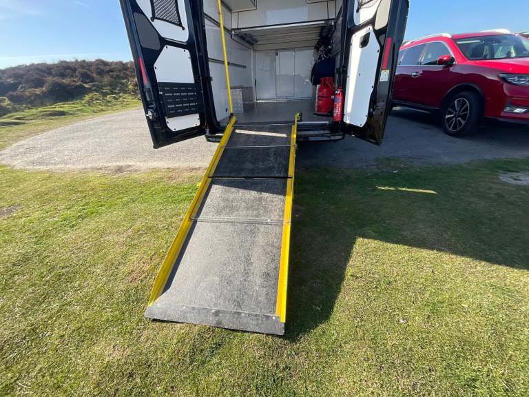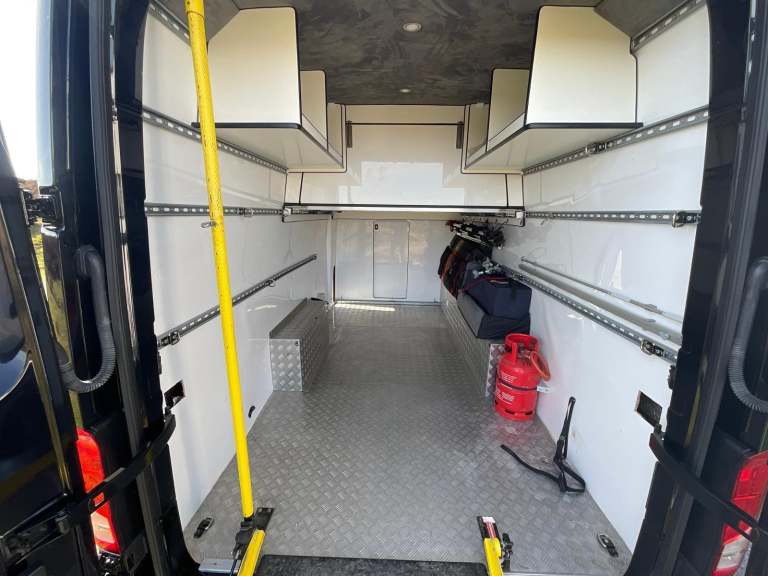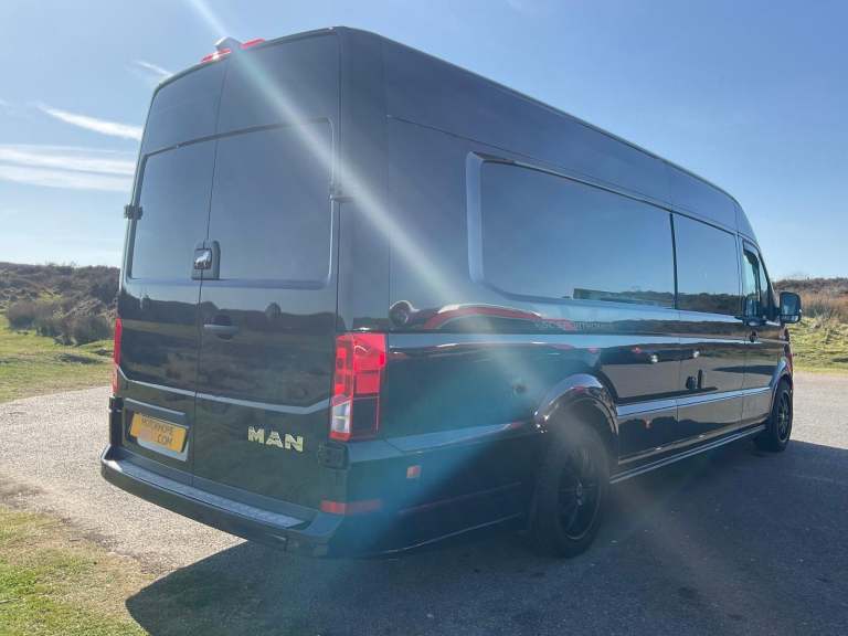 Motorhome depot Newport present this SC Sporthome Race van, Located near Pontypool, Newport. The vehicle is a MAN TGE 3.180, XLWB with an 8 speed Auto gearbox, first registered in March 2021. The vehicle has been up-plated to 4200kg with all relevant chassis plate giving you enough payload to use the vehicle to its full potential. C1 will be required to drive the vehicle.The vehicle is finished with Metallic Black paintwork, full LED auto headlights, cornering lights, heated steering wheel, cruise control, extended media package with larger screen, Apple carplay / Android, Satnav, drop down handbrake, factory fitted captains swivel front seats. Factory fitted privacy glass with internal blinds, full Remis blinds to the front cab.The van has a large double bed that can fold up on rollers to give more space in the garage. There is an additional single jump bed for the front seats to allow the vehicle to sleep 3 people. The kitchen is equipped with a Vitrifrigo compressor fridge with small freezer compartment, Dometic combined twin gas hob and sink unit, with cold water feed from a 20ltr water container, blown air heating is via a Truma Vario heat system. The electrical system has a mains charger, B2B charger, Solar panel, 240V hookup, large Gel leisure battery, LED internal lighting, external awning lighting.Externally there is a Fiamma F45s 4.5 meter wind out awning, a nearly new Fiamma privacy room with internal floor, tensioning poles, door poles, including magnetic draught curtain. Lower body kit fitted with front splitter and side skirts. Rear access ramp that folds up and also swivels to give access to the rear. The garage is shown with a GS and one Enduro, it can easily take two of each, plus mountain bikes to give you an idea of its size and capabilities.To see the additional pictures, have any questions, or if you want to view the vehicle, please contact Nathan on [Phone number removed]and I will be happy to help.
