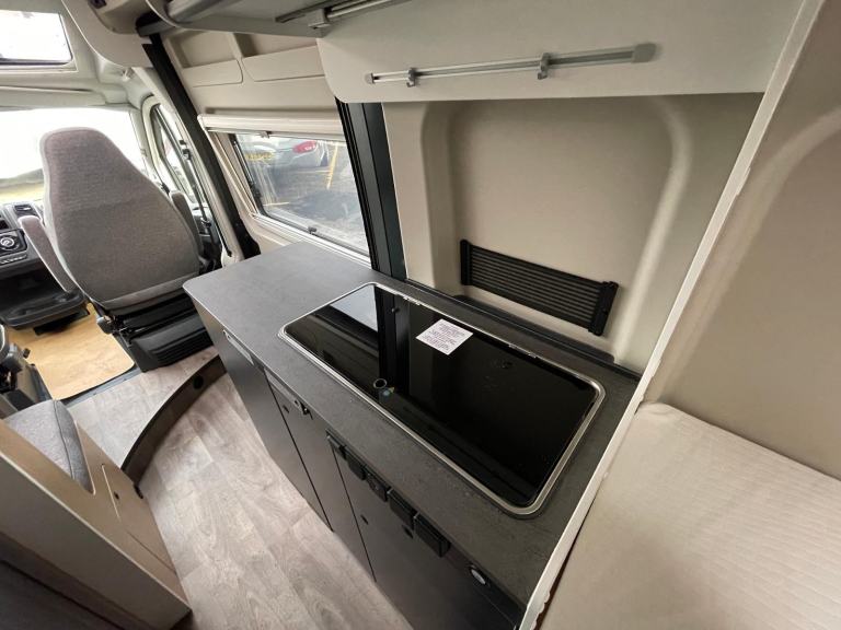 • Ergonomic kitchen: 2-burner gas hob, sink & 84 L 12V compressor fridge