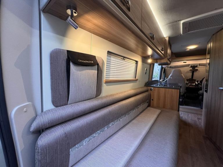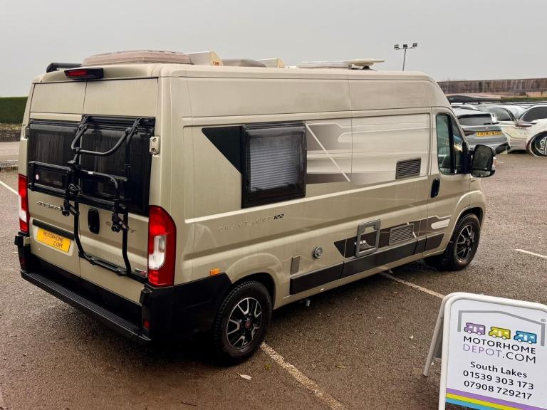 Motorhome Depot South Lakes are pleased to present this 2019 Swift Select 122 Champagne Edition. Fiat Ducato 2.3 diesel engine22,230 miles2 berth, 2 beltsTrackerDiamond GuardTyrepalThe Champagne Edition is a special edition with upgraded exterior and interior, 16 inch alloys and many more features. The unusual Champagne colour and decals really makes this motorhome stand out from the norm and the interior is a very attractive colour giving the motorhome a really luxurious feel.The rear of the motorhome is fitted out with twin settees and a unique extra seat creating a U shaped lounge with extra storage makes a good sized double bed or twin singles. The rear seating area benefits from a tv and choice of two tables. In the middle of the motorhome is a very nice, well equipped kitchenette, fitted out with a 3 burner gas hob, oven/grill, sink and a fridge with ice box. There are plenty of storage cupboards and compartments throughout the living and kitchen areas giving you excellent storage in a compact motorhome. Across from the kitchen is a lovely bathroom equipped with sink, toilet and a shower.The Motorhome is fitted with a reversing camera, parking sensors, roll out awning, Cab AC, solar panel and tow bar.Weight – 3500 can be driven on a standard licenceMOT due 3rd Aug 2026Location: Kendal Cumbria