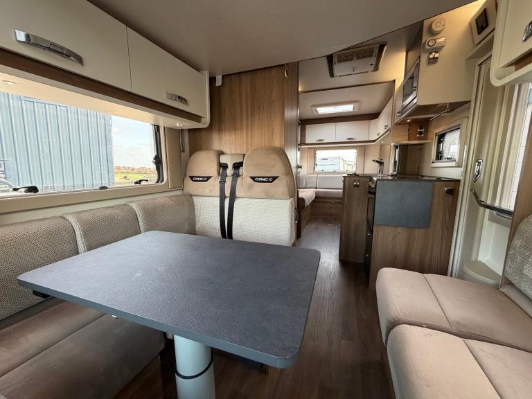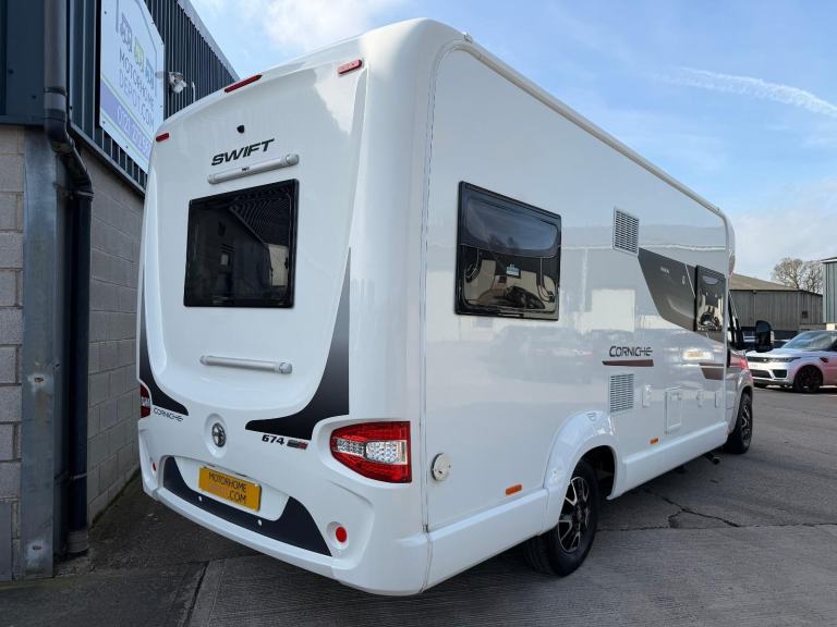 Swift Corniche 674 2.3 Diesel – Special Edition – 1 Owner – 11,730 Miles – 3500kgWe present this rare special edition Swift Corniche 674 at our showroom in Anslow, Burton on Trent, a highly sought-after model offering an exceptional level of specification and comfort. With just 1 owner from new and only 11,727 miles, this is a fantastic opportunity to acquire a premium motorhome that has been lightly used and extremely well specified.As a special edition model, the Corniche benefits from an upgraded finish and a host of additional luxuries, making it stand out from standard variants. With a gross weight of 3500kg, it can be driven on a standard UK driving licence.Layout & Living Space – 6 BerthDesigned with space and flexibility in mind, this model offers a highly practical family layout:Spacious rear U-shaped lounge with panoramic windowsElectric drop-down double bedAdditional beds converting from the lounge/dinette areas6 berth configurationBright, modern interior with excellent storage throughoutThe large rear lounge creates a comfortable and sociable living area during the day, while the drop-down bed allows you to retain valuable living space without daily reconfiguration.Specification & FeaturesThis Swift is exceptionally well equipped, including:2.3 FIAT Diesel engineOnly 11,730milesTruma habitation air conditioningCab air conditioningCruise controlReversing cameraSargent solar system3 gas burner hobOvenFridge freezerUSB charging pointsAlloy wheelsThule awningExterior shower pointExternal 240v 3-pin socketExternal BBQ pointStorage for 2 gas bottlesThe inclusion of habitation air conditioning, solar charging, external utility points and awning makes this an ideal motorhome for extended touring or off-grid trips.For any questions or further details, please contact Joe