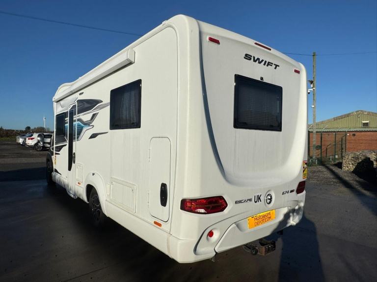For sale: 2024 Swift Escape 674, a highly sought-after 6 berth motorhome offering exceptional comfort, space, and practicality. This model features a popular rear U-shaped lounge that converts into a large double bed, plus a spacious over dinette electric drop down double bed also front dinnette converts into double bed.Inside, the 674 boasts a bright and modern interior with high-quality furnishings, LED lighting, and excellent natural light. The fully equipped kitchen includes a gas hob, oven/grill, microwave, fridge/freezer, and plenty of worktop and storage space. The washroom is well-designed with a separate shower, modern basin, and cassette toilet.Built on a reliable chassis with a smooth and economical engine, the 2024 Swift Escape delivers confident handling and a comfortable driving experience. It comes with cab air conditioning, external shower, external BBQ point, cruise control, a touchscreen media system, tow bar and electrics, reversing camera, and multiple USB/charging points.Available now at Motorhome Depot, Farnsfield. Contact us today to arrange a viewing!
