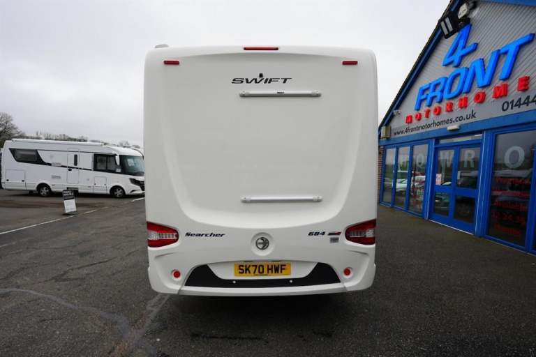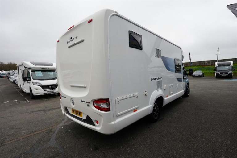 3500 KG Gross weight standard driving licence required only...L-7.41m...W-2.31m...H-2.88m...This exquisite one owner, low mileage Limited Edition Swift Searcher 684. With a striking blue metallic cab, diamond cut alloy wheels and adorned with complementary stylish interior. Making unquestionably a consideration for the adventurous young family. Who actually desire a incredible versatile 4 berth 4 travelling seats configuration. That can tackle family dynamics literally in comfort and convenience. With the magnificent individually longitudinally beds, which effortlessly transforms into an adults size double bed. The perfect solution to experience a cosy nights sleep. Where you will definitely awake up totally refreshed and alert for the days exploring ahead of you. Abundance of storage space below and huge garage behind for your personal belongings. Needed while away from the homely environment. That can be accessible from outside lockers. Next the family airy combined washroom/ shower, with a shower curtain, toilet, corner hand wash basin, a cupboard below to house all the toiletries and a good size vanity mirror. Position directly opposite the modern appliance kitchen area, featuring, 3-burner gas hobs, combination oven grill, microwave, large tower fridge freezer, sink and generous amount of worktop space including storage compartments to house all those kitchen utensil used. For rustling up a snack or cooking that delicious meal. Progressing slightly forwards to serene atmosphere multi functional dinette lounge area. With an luxurious L-shaped sofa, which ingeniously integrates two front facing travelling seats, a inward facing sofa, free standing dinning table and ample storage above. Simply swivelling both front captain seats around, will literally increases the seating capacity. The perfect space for unwinding with the family, making memories and occasionally casting your eyes out at the glorious horizon or the picturesque starry night. Finally when ready for a comfortable nights sleep, will seamlessly transform into another adults size double bed. This makes up the four sleeping arrangements of this exceptional Limited Edition Swift Searcher 684. That also comes with an exclusive specification such as, cab air conditioning, wind out canopy awning, cruise control, solar panel, outside gas BBQ point, outside shower point, front windscreen blind and will be complimented with all the original documentation, manuals including two sets of keys. Now is your family ready to be exhilarated in the Swift Searcher 684 on your next adventure together!!